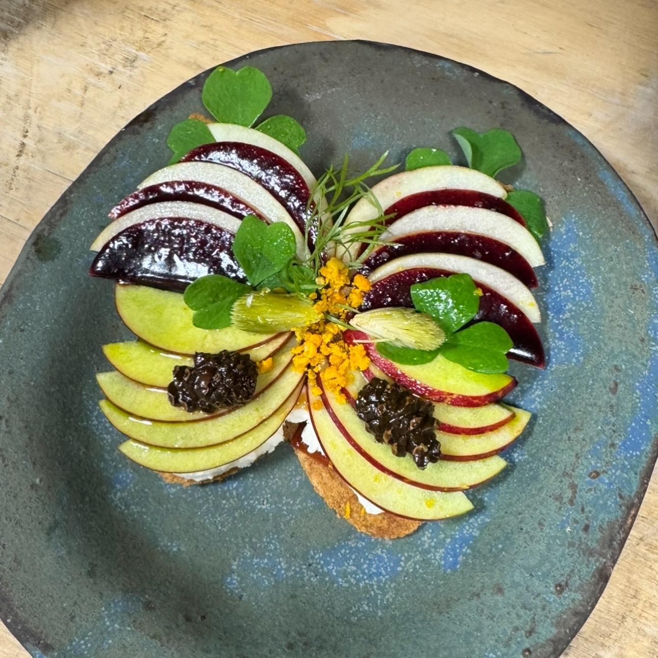 Nel suo curriculum compaiono il Caffè Nazionale di Paolo Griffa ad Aosta, l’AT Pâtissier di Andrea Tortora e Piazza Duomo ad Alba, dove la cucina si avvicina all’arte proponendo piatti ispirati alle opere dei grandi artisti. Un’arricchente collezione di esperienze che lo portano fino a Copenaghen, dove entra, per un breve periodo, nella cucina stellata dell’Alchemist. “Un ristorante immersivo, dove le cene durano fino a sei ore” racconta Michelini. “In una sala è presente una cupola planetaria che proietta scenografie riguardanti ciò che hai nel piatto. In una stanza dalle pareti bianche è invece possibile disegnare o scrivere utilizzando vernice commestibile. I clienti si mangiavano ciò che scrivevano”.
