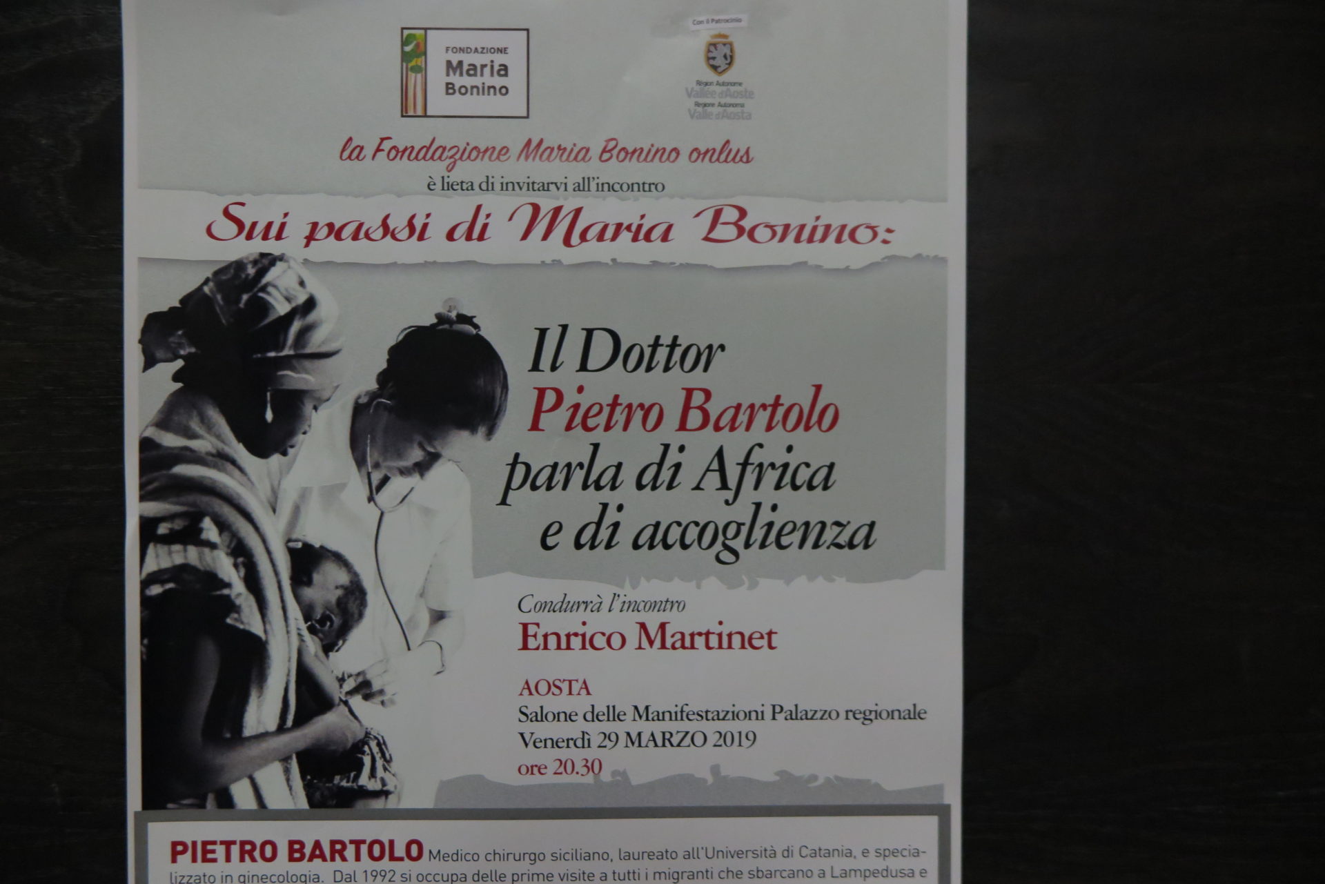 L’evento è stato organizzato dalla Fondazione Maria Bonino per ricordare la sua fondatrice, scomparsa il 24 marzo 2005. Maria Bonino partì in Africa negli anni Ottanta per aiutare quegli ultimi di cui oggi si prende cura Pietro Bartolo quando arrivano sulla sua isola.