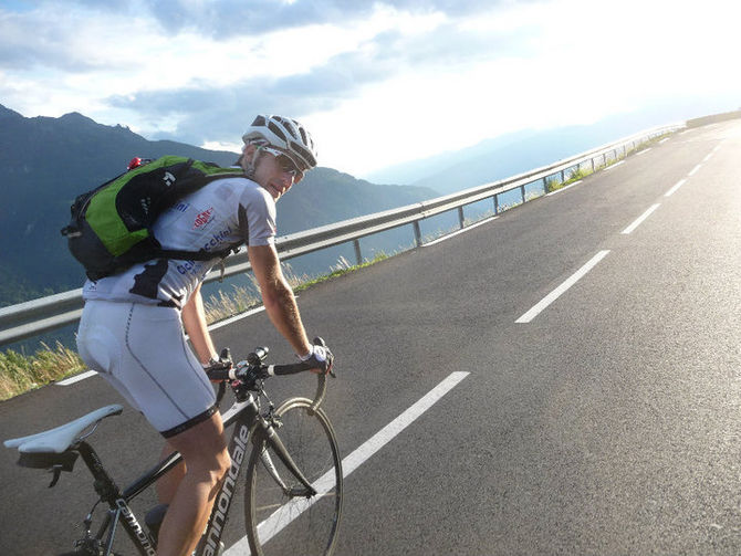 Alle prime luci dell’alba del 25 luglio i due hanno raggiunto il Colle del Gran San Bernardo. Il termometro segnava un grado e le nubi avvolgevano il paesaggio. “Si va avanti nonostante tutto” si sono detti e hanno così impegnato la fredda discesa verso Martigny poi, sul fondovalle, hanno attaccato il Colle de la Forclaz, il Col des Montets, poi Chamonix. A Saint Gervais si sono fermati per una sosta per il pranzo: panini e bibite fresche, prima di riprendere a pedalare verso Megève. Trenta kilometri di salita portano al Cormet di Roselend, poi finalmente un’altra tappa per rifocillarsi ma nuvoloni neri e minacciosi li hanno costretti a dimezzare la sosta.