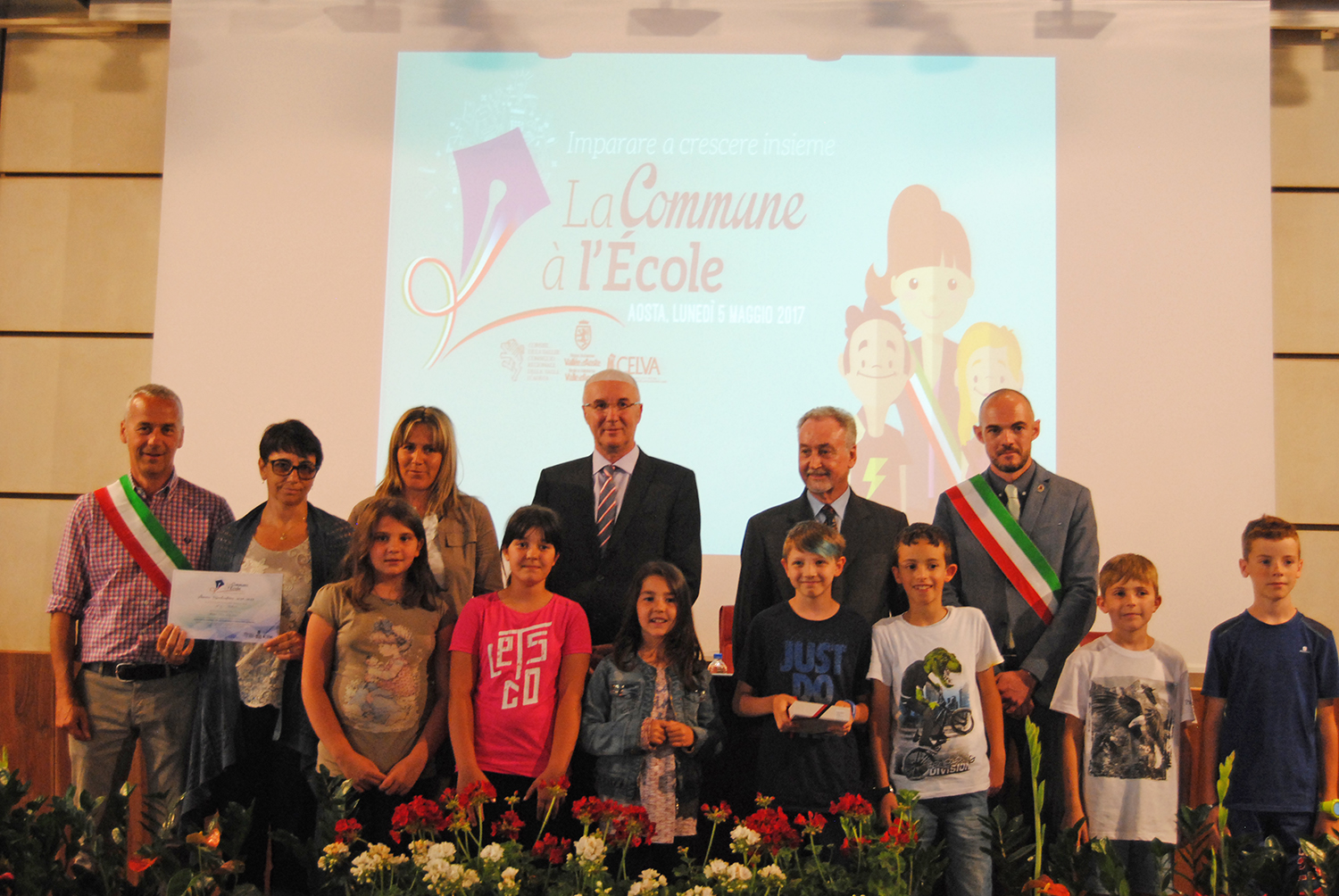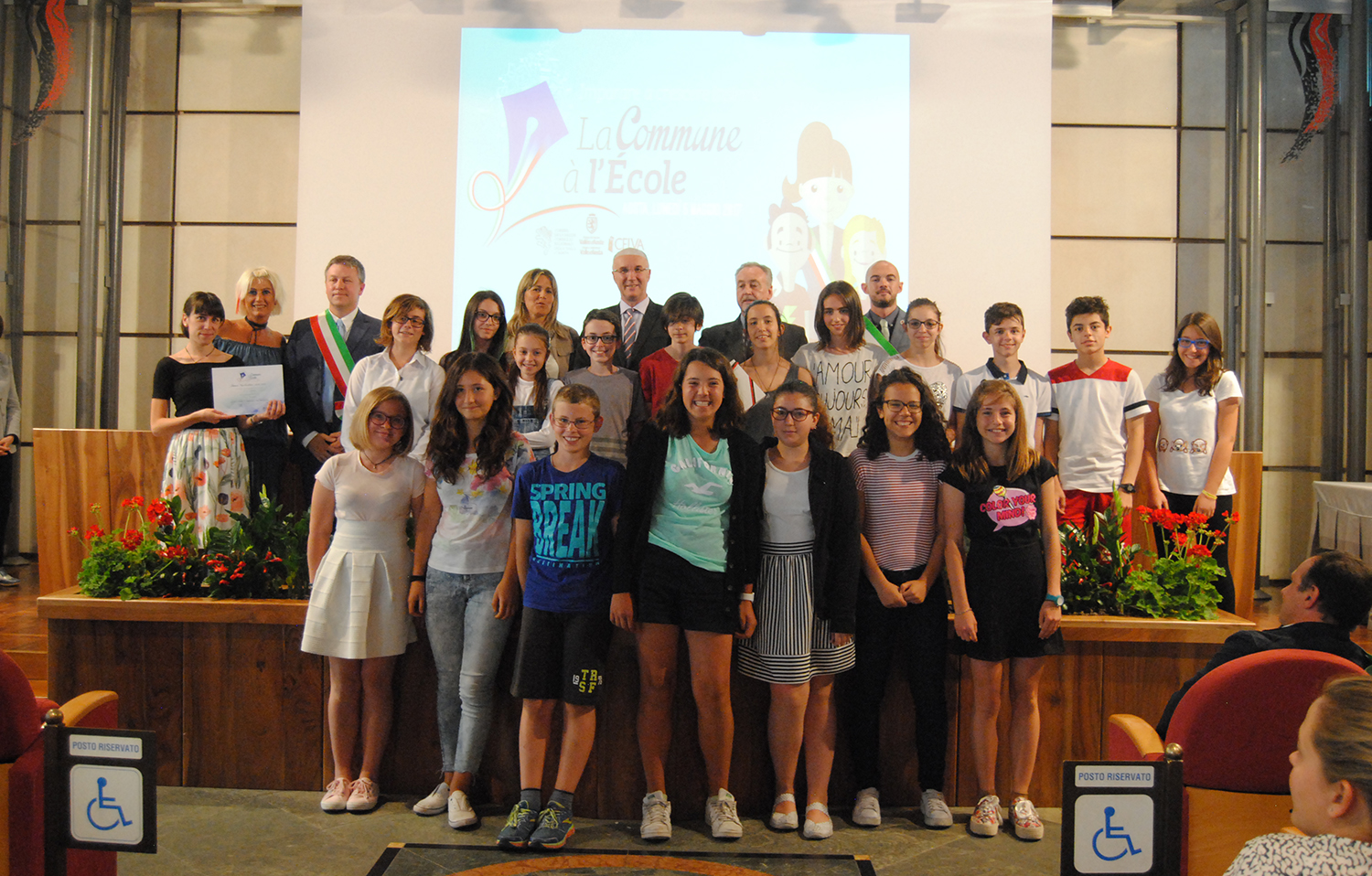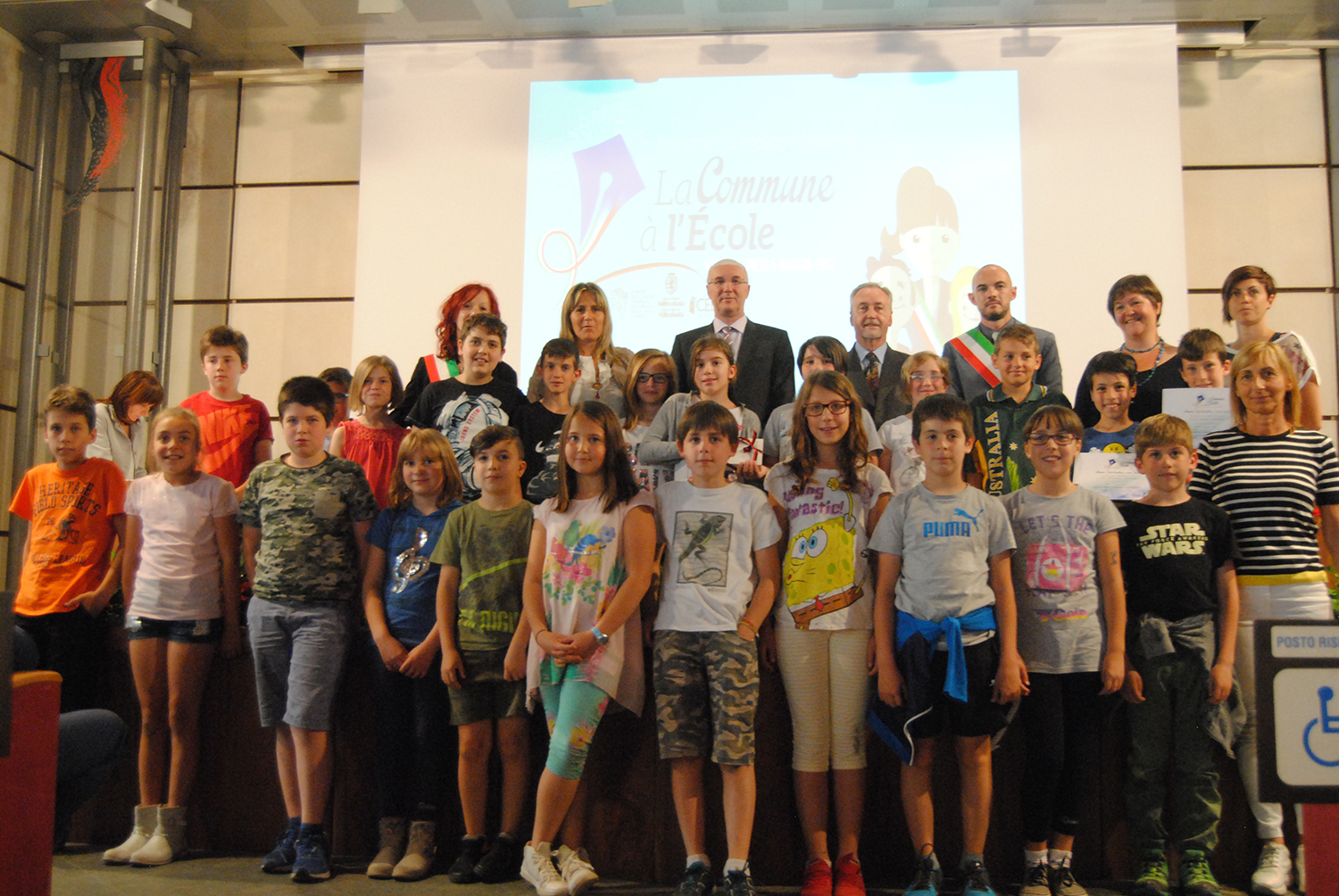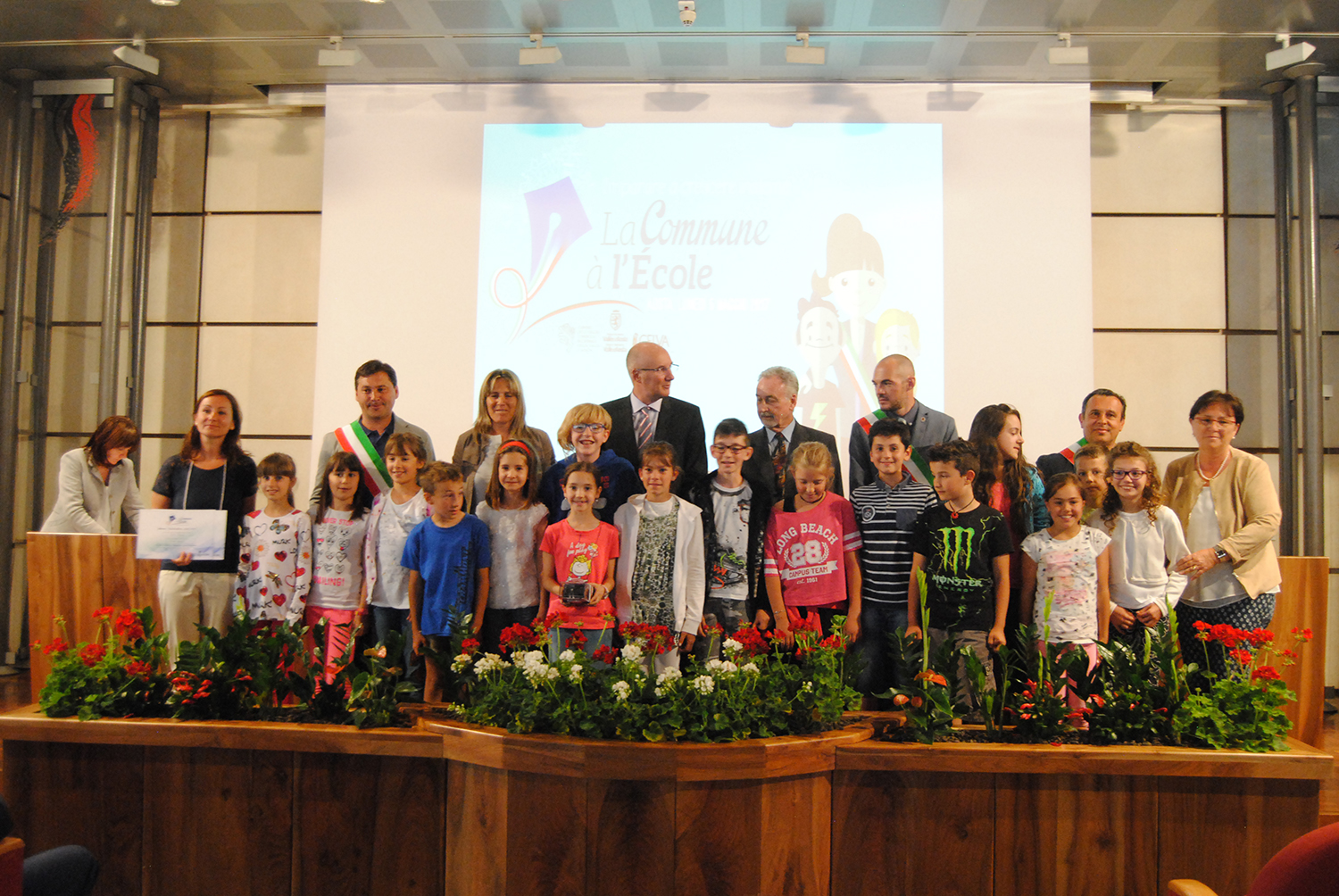 Sono state premiate questo pomeriggio in Palazzo regionale le sedici classi – 11 appartenenti alle scuole primarie, 5 alle scuole medie – di diversi comuni valdostani che hanno partecipato alla prima edizione del concorso “Impariamo a crescere insieme”, promosso all'interno del progetto “La Commune à l'École” ed organizzato dalla Presidenza della Regione, l'Assessorato regionale Istruzione e cultura, il Consiglio Valle ed il Celva.