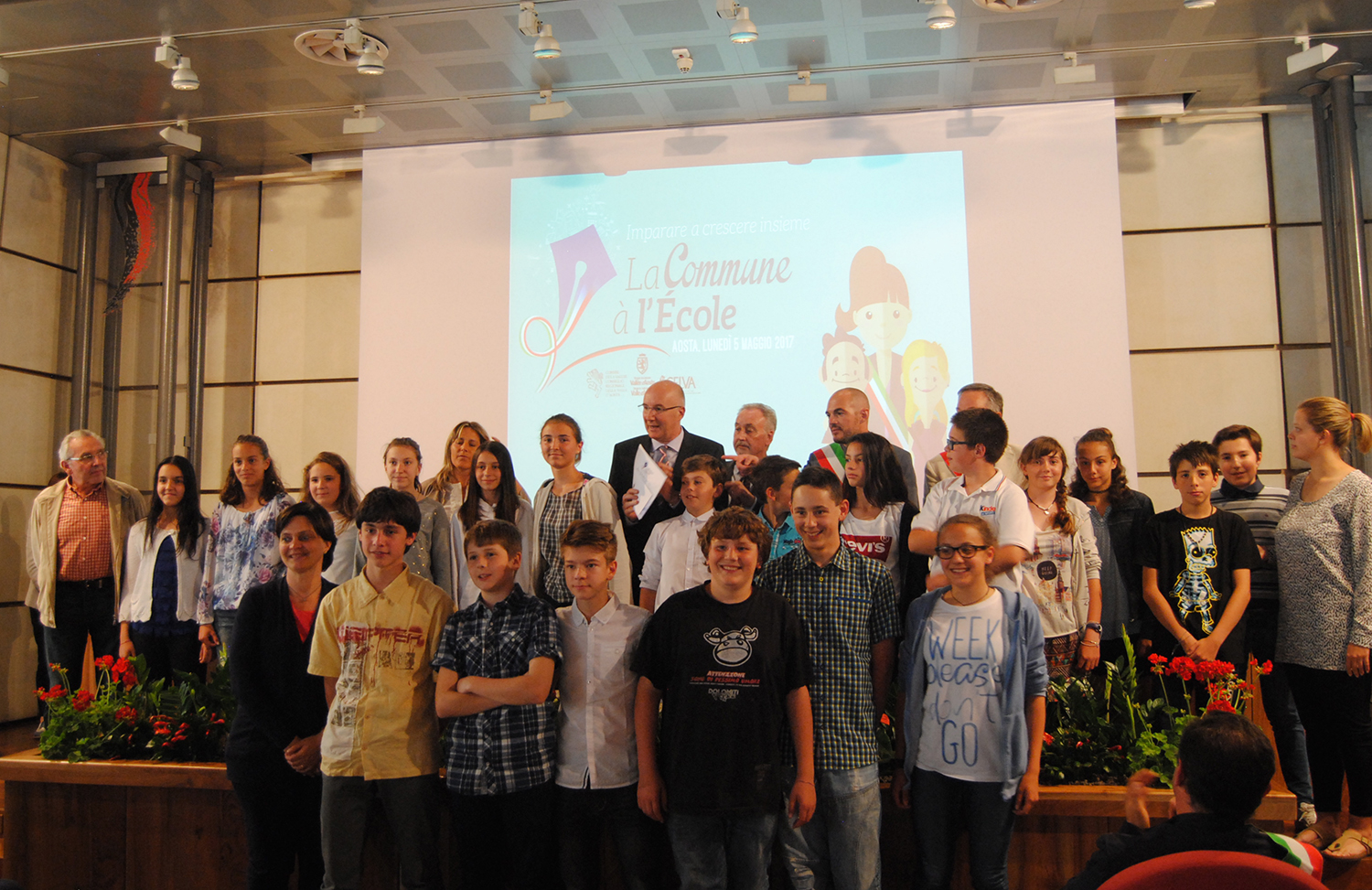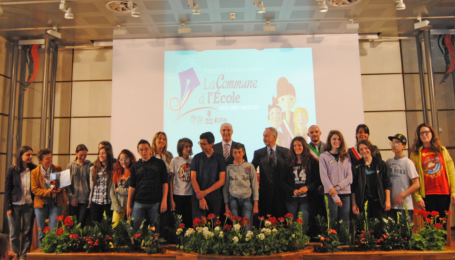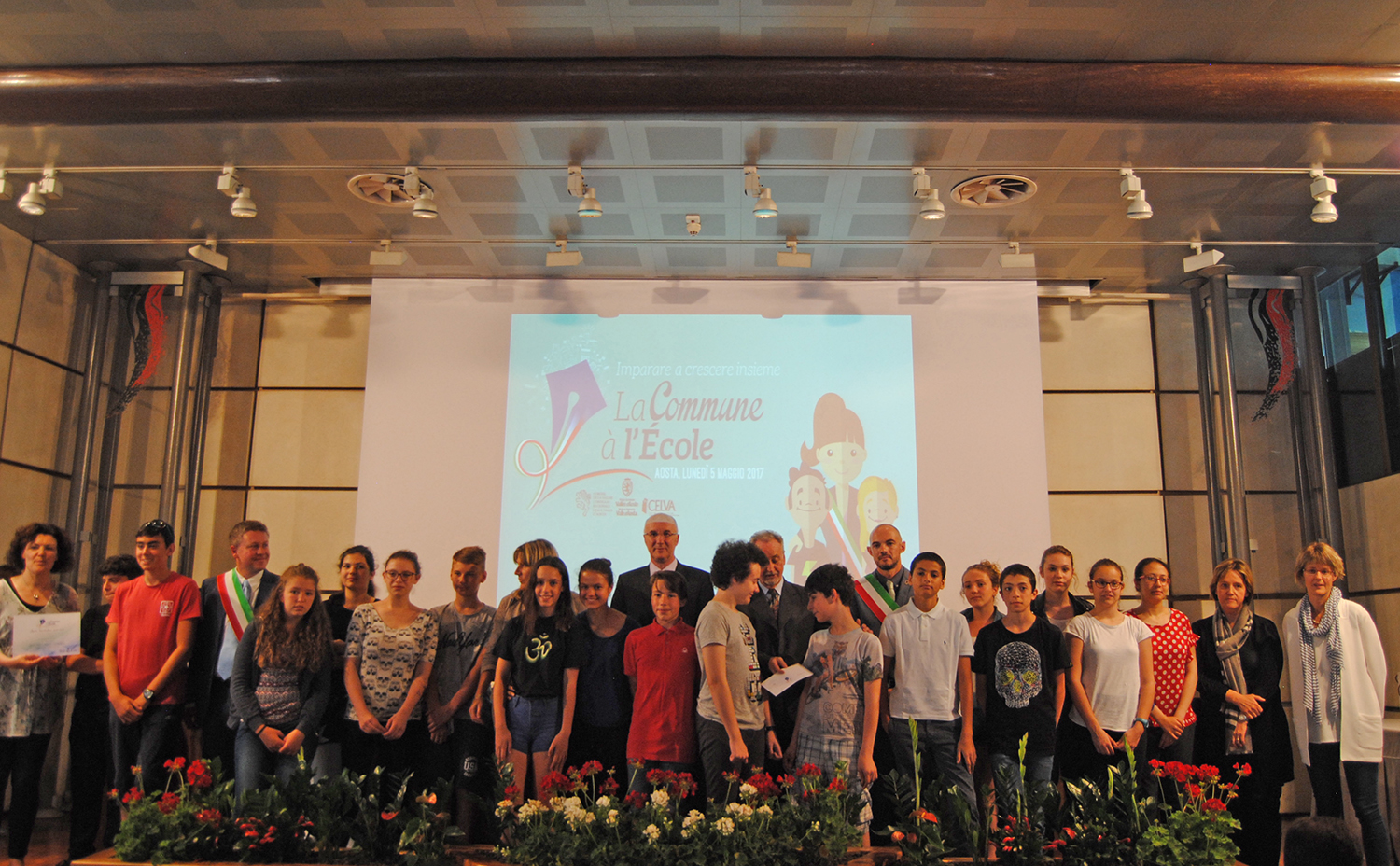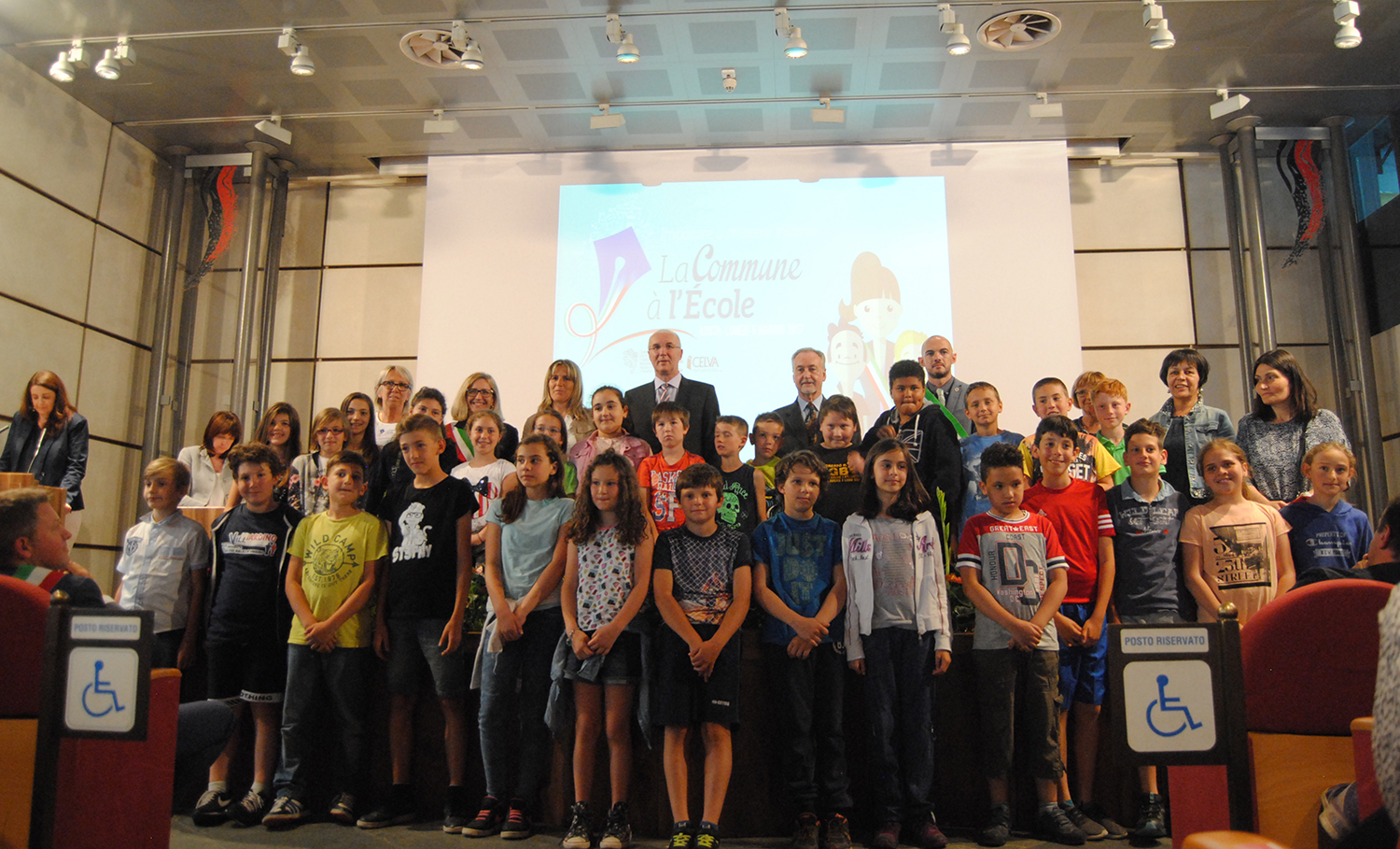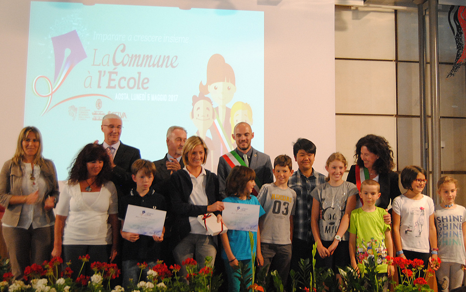 Sono state premiate questo pomeriggio in Palazzo regionale le sedici classi – 11 appartenenti alle scuole primarie, 5 alle scuole medie – di diversi comuni valdostani che hanno partecipato alla prima edizione del concorso “Impariamo a crescere insieme”, promosso all'interno del progetto “La Commune à l'École” ed organizzato dalla Presidenza della Regione, l'Assessorato regionale Istruzione e cultura, il Consiglio Valle ed il Celva.
