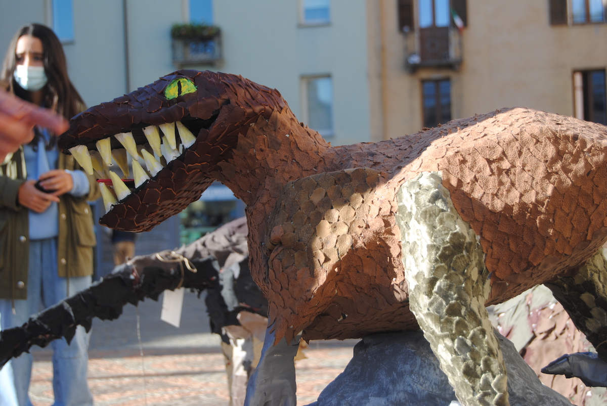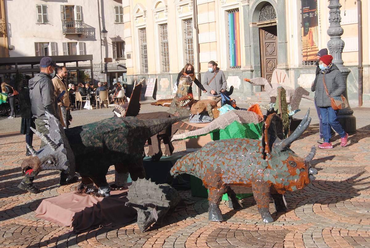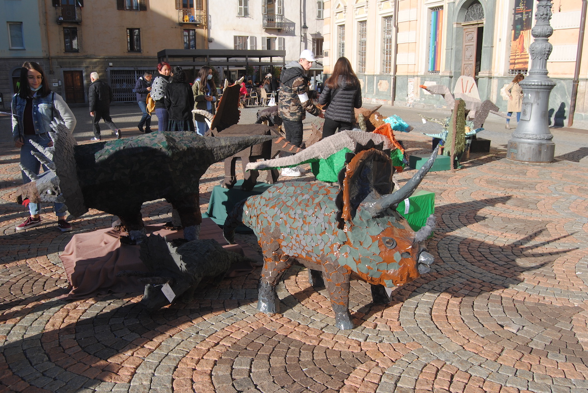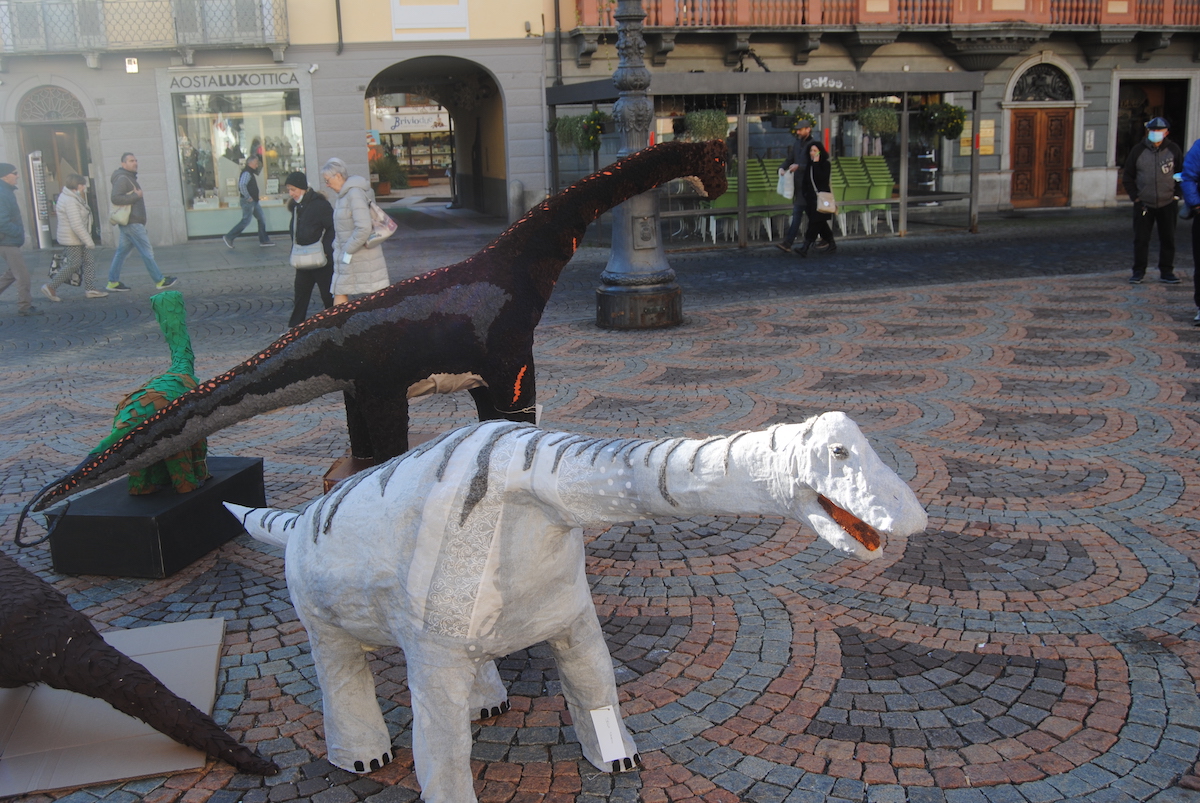 “Jurassiko in Arte”, i dinosauri del Liceo Artistico invadono piazza Chanoux