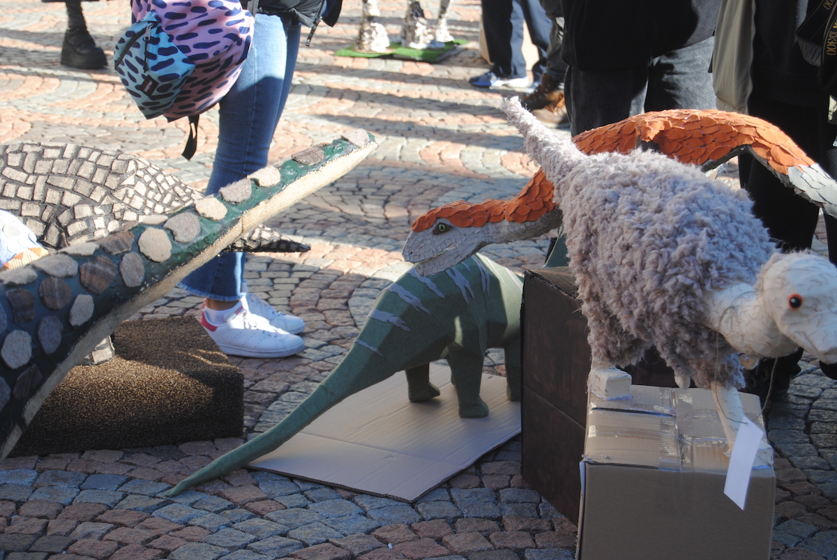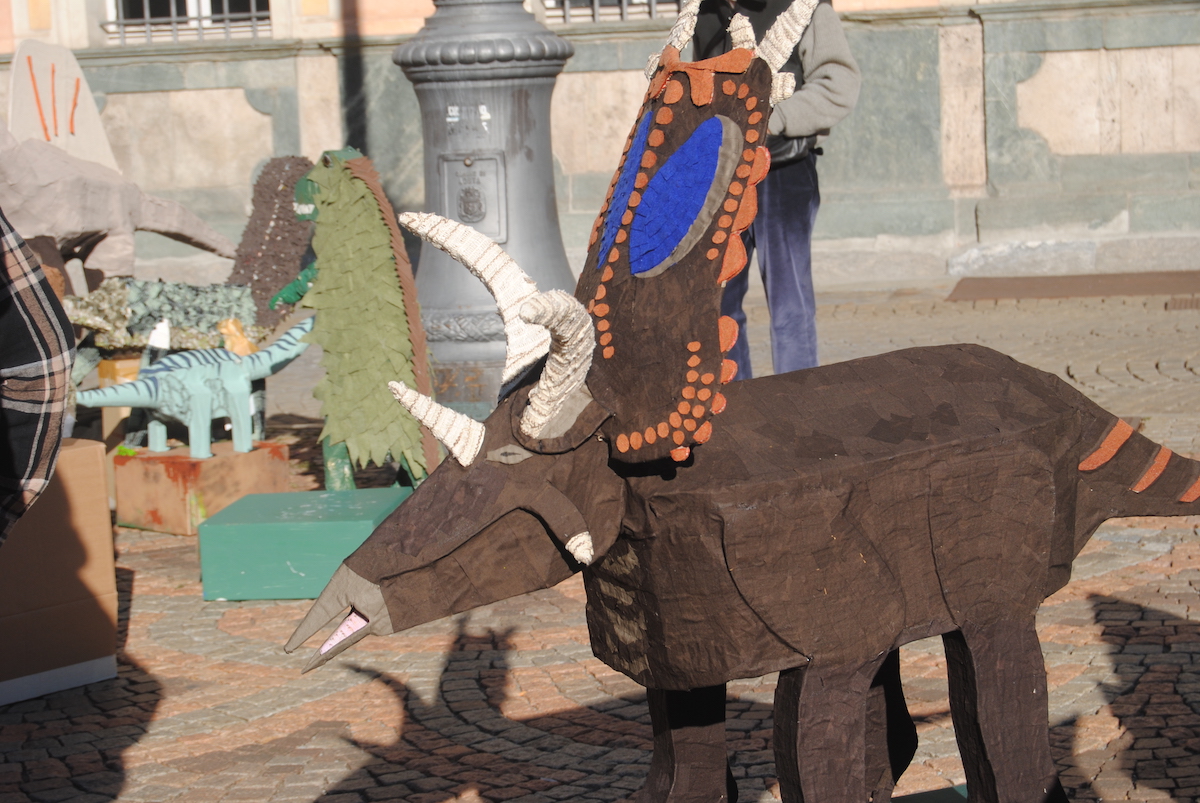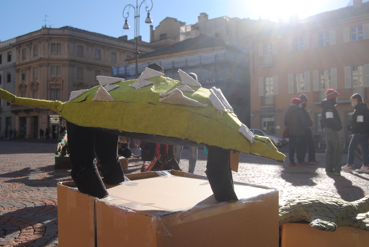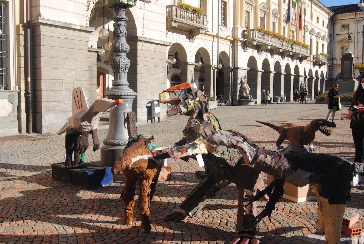 “Jurassiko in Arte”, i dinosauri del Liceo Artistico invadono piazza Chanoux