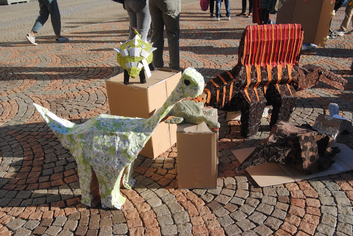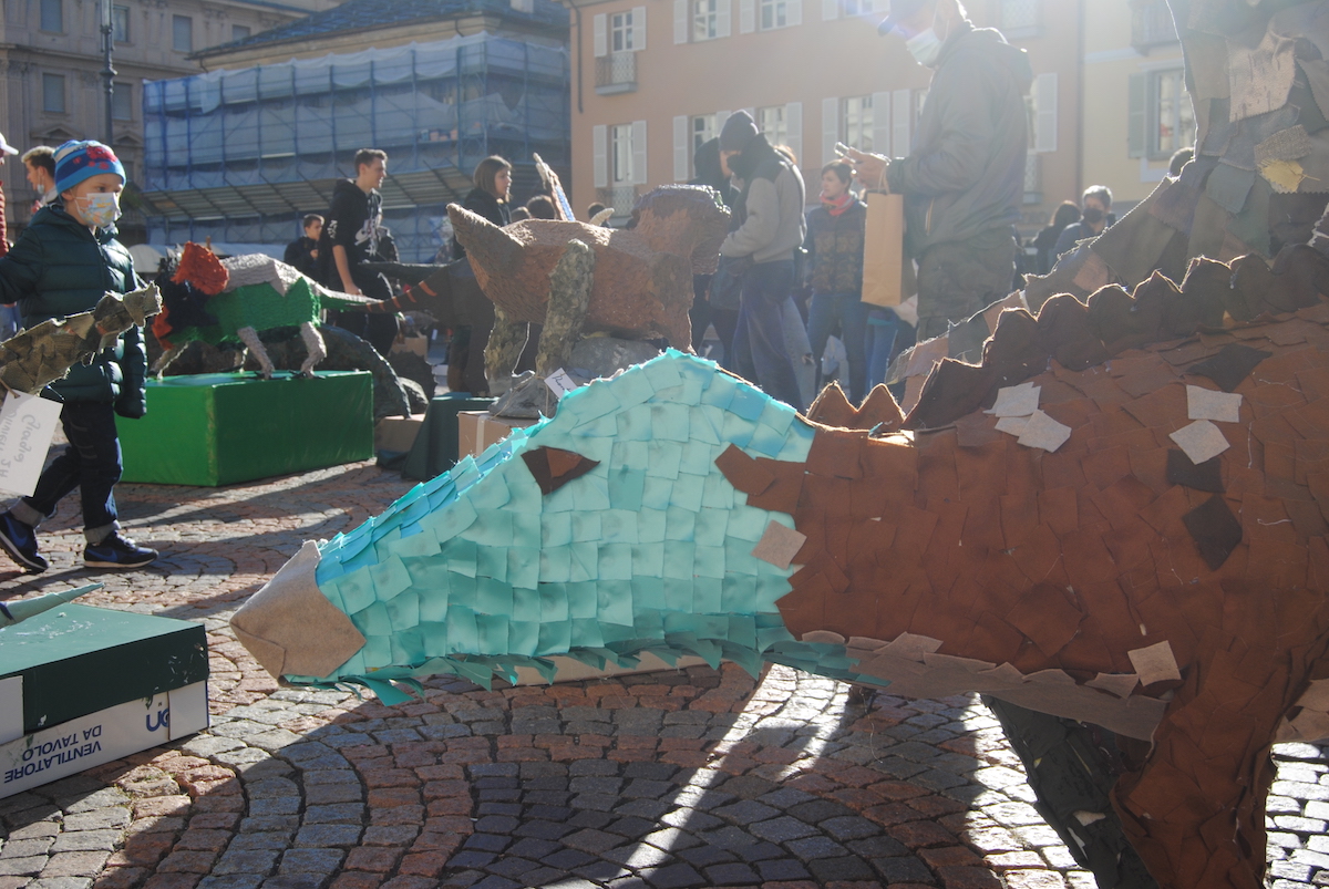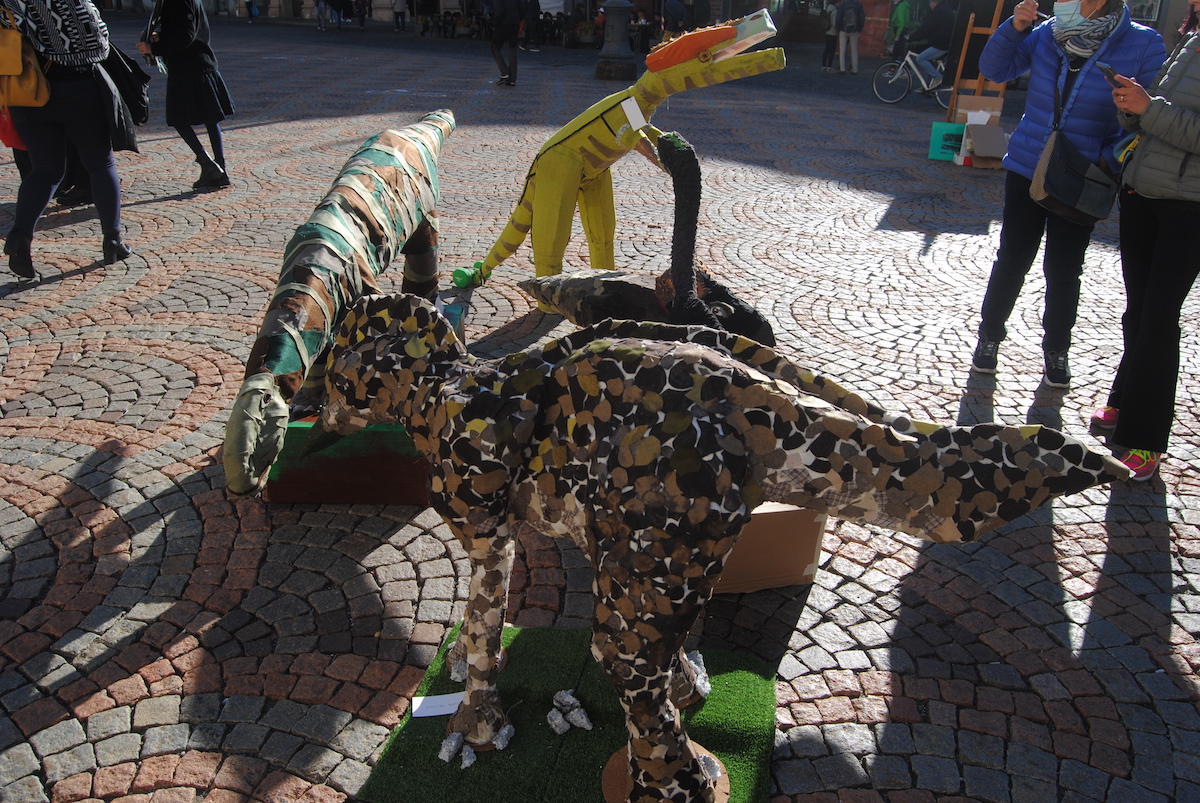 L’esposizione continuerà anche altrove: la biblioteca di Donnas ha già chiesto al Liceo Artistico una parte delle opere da poter esporre per un periodo nei propri locali, mentre il pubblico in piazza ha accolto con curiosità e interesse la pacifica invasione di dinosauri sotto al municipio del capoluogo.