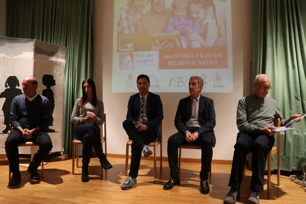 “Nati per Leggere” è un progetto, attivo in tutta Italia già dal 1999, che punta sulla lettura ad alta voce ai bimbi in età prescolare, strumento molto utile ad ampliare le potenzialità di apprendimento e di promozione della salute. E’ promosso dall’Associazione Culturale Pediatri, dall’Azienda U.S.L. Valle d’Aosta e dal Sistema Bibliotecario Valdostano in collaborazione con l’Assessorato Sanità, Salute e Politiche Sociali e dell’Assessorato Istruzione e Cultura della Regione Autonoma Valle d’Aosta.