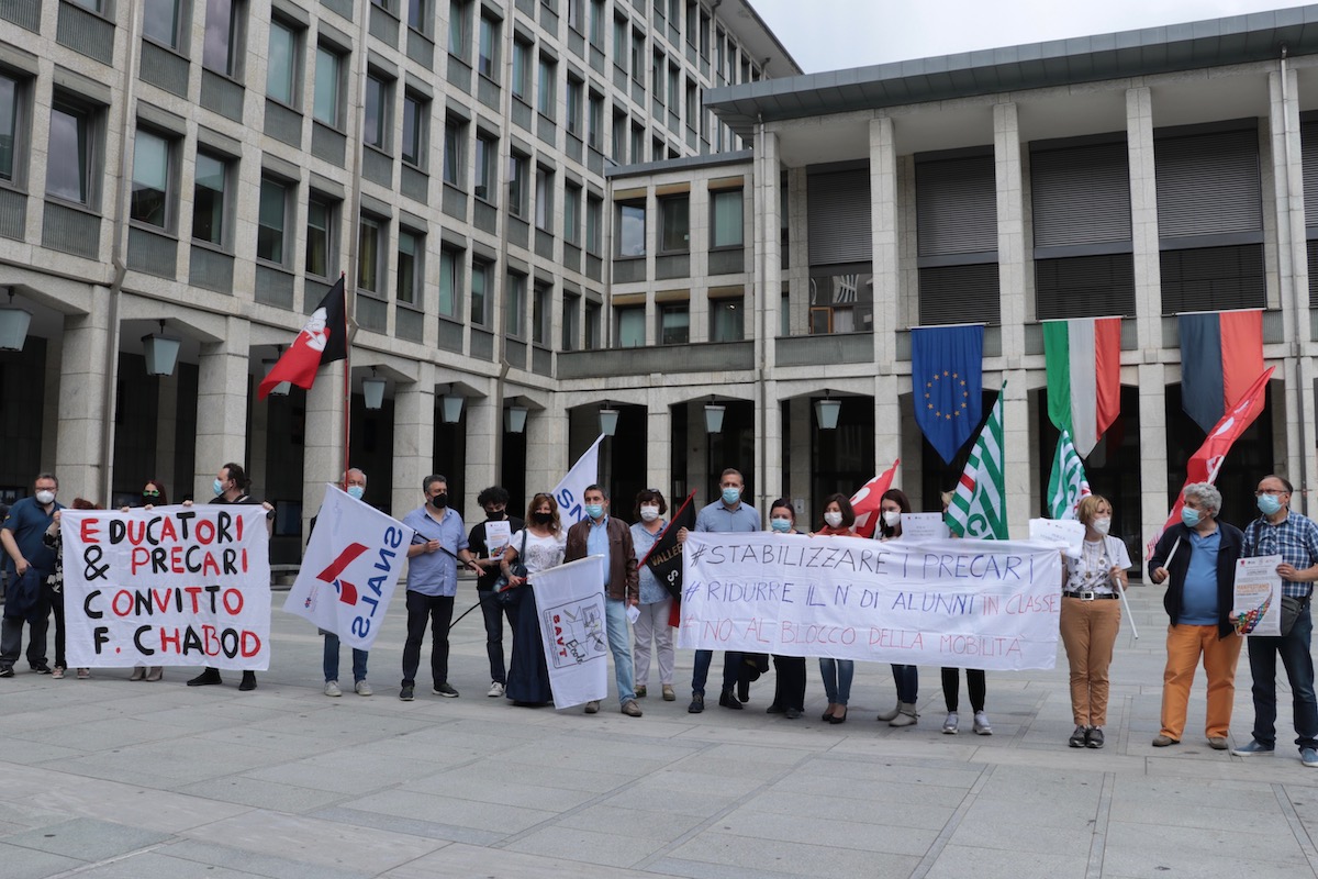 Sono scesi in piazza Deffeyes oggi, mercoledì 9 giugno – e vi resteranno in presidio fino alle 17 –, le organizzazioni sindacali della scuola Flc Cgil, Cisl Scuola, Savt École e Snals, a sostegno della manifestazione nazionale con l’obiettivo, dichiarato, di sensibilizzare le forze politiche sulla necessità di cambiare il provvedimento legislativo del Governo durante l’iter di conversione di legge.