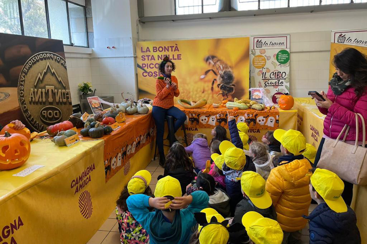 Al termine, alunni e insegnanti hanno ricevuto un biscotto di Halloween dell’Azienda Chappoz e un buono che prevede uno sconto del 10 per cento da spendere nelle 14 aziende presenti al Mercato Coperto di Campagna Amica il martedì ed il sabato mattina.