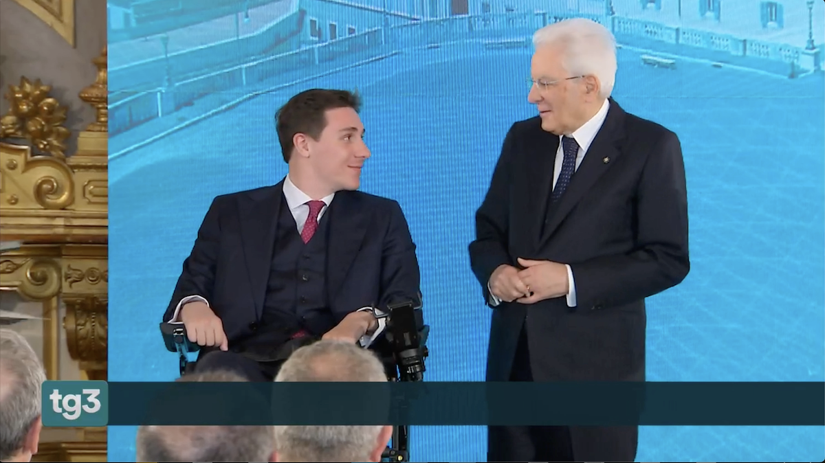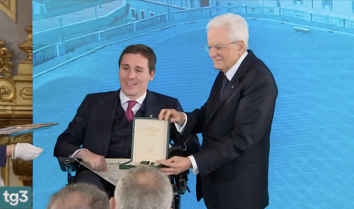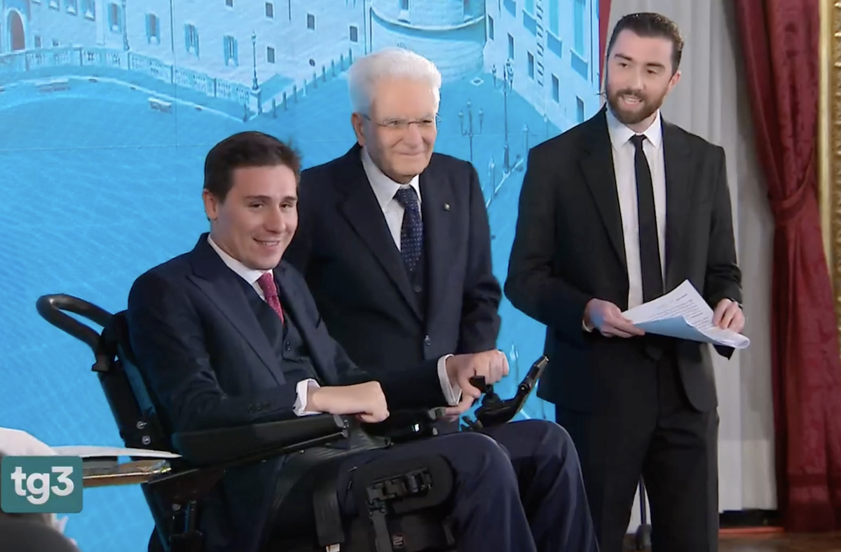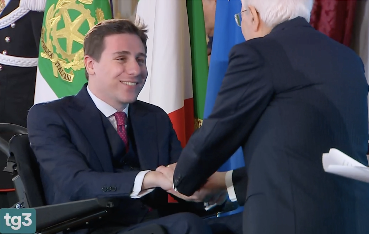 “A seguito di un recente incidente che lo costringe sulla sedia a rotelle si è laureato e ha conseguito un Master al termine del quale ha pronunciato un discorso motivazionale diventato diventato virale in rete”, chiude la comunicazione del Colle.