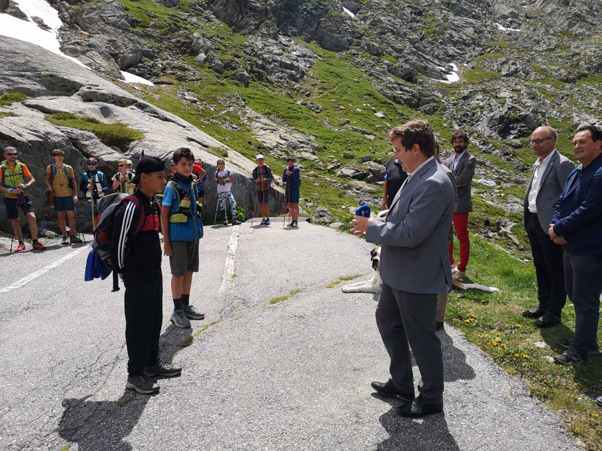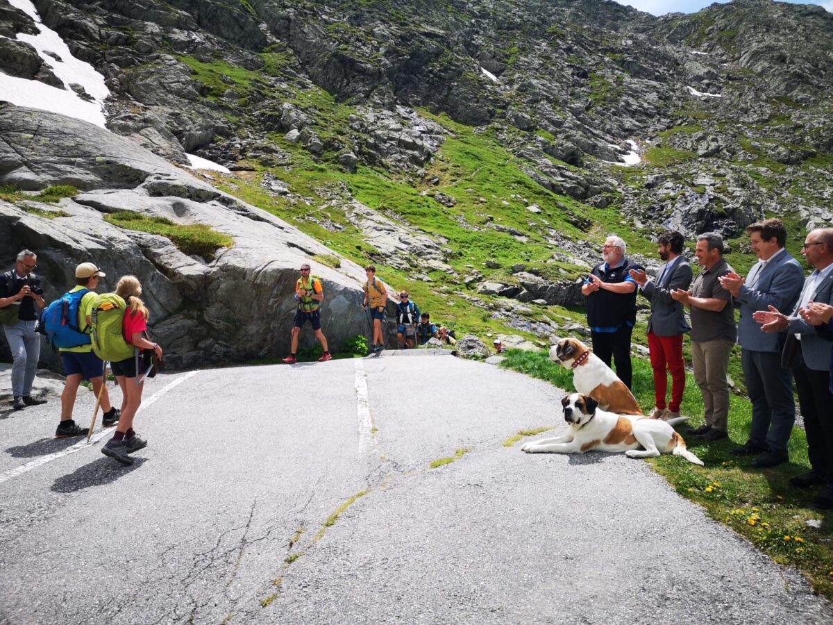 Il rendez- vous tra le diverse autorità del Vallese e della Valle d’Aosta è stato seguito dalla cerimonia del passaggio dell’Alpenstock, il bastone che ha accompagnato i giovani camminatori durante il loro tragitto. Dato che quest’anno, a causa della pandemia, non è stato possibile svolgere l’abituale “Séjour pédagogique transfrontalier” che prevedeva che i ragazzi e le ragazze (dai 12 ai 15 anni) delle diverse nazionalità camminassero insieme, l’organizzazione ha deciso di percorrere il giro del Monte Bianco per tappe. La partenza è avvenuta il 21 luglio a Chamonix, poi il testimone è passato in Svizzera per il Col de Balme per poi essere portato in Italia attraverso il Colle del Gran San Bernardo. Il percorso proseguirà fino a raggiungere nuovamente la Francia, attraverso il Col de la Seigne, per ritornare, infine, a Chamonix il 27 luglio.