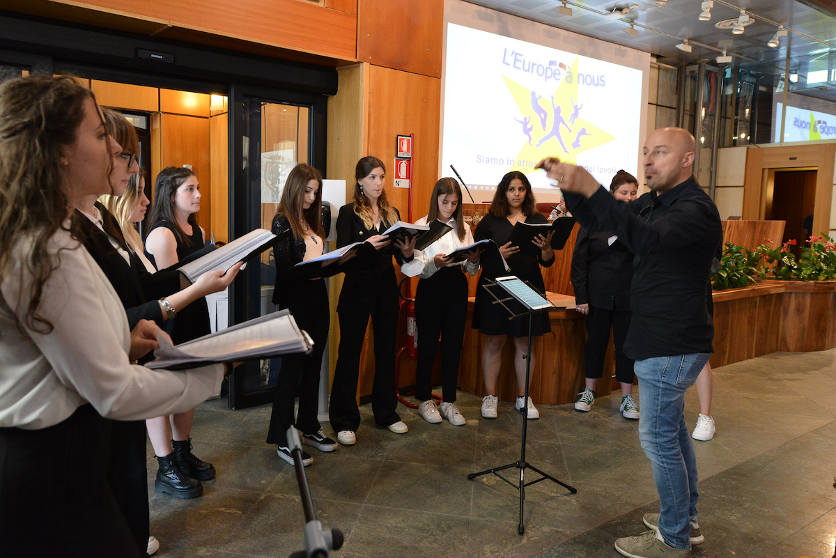 Alcuni brani musicali, tra cui l’Inno alla Gioia di Beethoven, Inno ufficiale dell’Unione europea, interpretati dagli studenti del Liceo musicale di Aosta, hanno accompagnato l’evento moderato dalla giornalista Martina Praz.