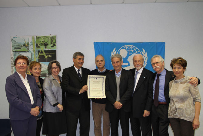 E’ stata consegnata ieri mattina dal presidente dell’Unicef Italia Giacomo Guerrera all’Azienda USL, la pergamena “Ospedale amico dei bambini”. A tre anni dal primo riconoscimento, infatti, l’Unicef ha riconfermato che l’Usl valdostana è tra i 22 soggetti riconosciuti in Italia. A decretarlo sono state le 110 interviste dei certificatori a persone che ruotano attorno all’evento nascita: nel dettaglio i valutatori dell’UNICEF hanno effettuato una rivalutazione dei livelli raggiunti nella promozione, protezione e sostegno dell’allattamento materno, constatandone l’eccellenza.