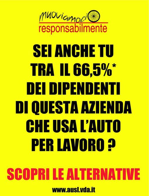 “Muoviamoci responsabilmente” è il titolo della campagna promossa dall’Usl della Valle d’Aosta e rivolta ai suoi dipendenti. La responsabilità in questione è quella che tutti noi abbiamo nei confronti dell’ambiente e della qualità dell’aria. Probabilmente, lì dove non è riuscita ad arrivare la coscienza civica dei cittadini potrà arrivare la morte dei tanto amati buoni benzina, i cui “funerali” sono in programma per il prossimo primo gennaio. La campagna dell’Usl è figlia di un decreto del marzo 1998, il Decreto Ronchi, che prevede che le aziende con più di 300 dipendenti realizzino un "piano degli spostamenti casa-lavoro” finalizzato a ridurre l’uso dei mezzi privati.