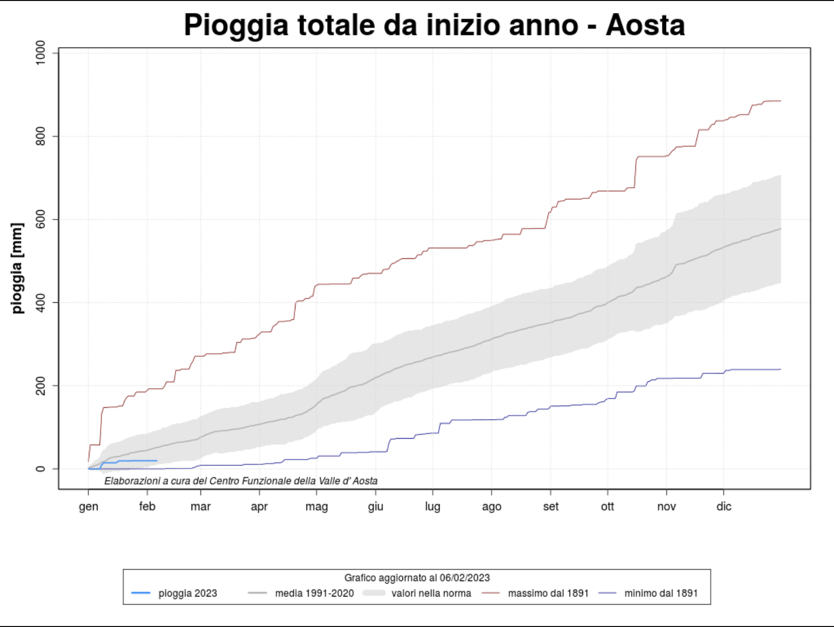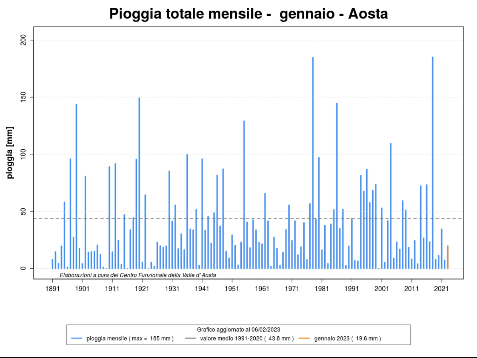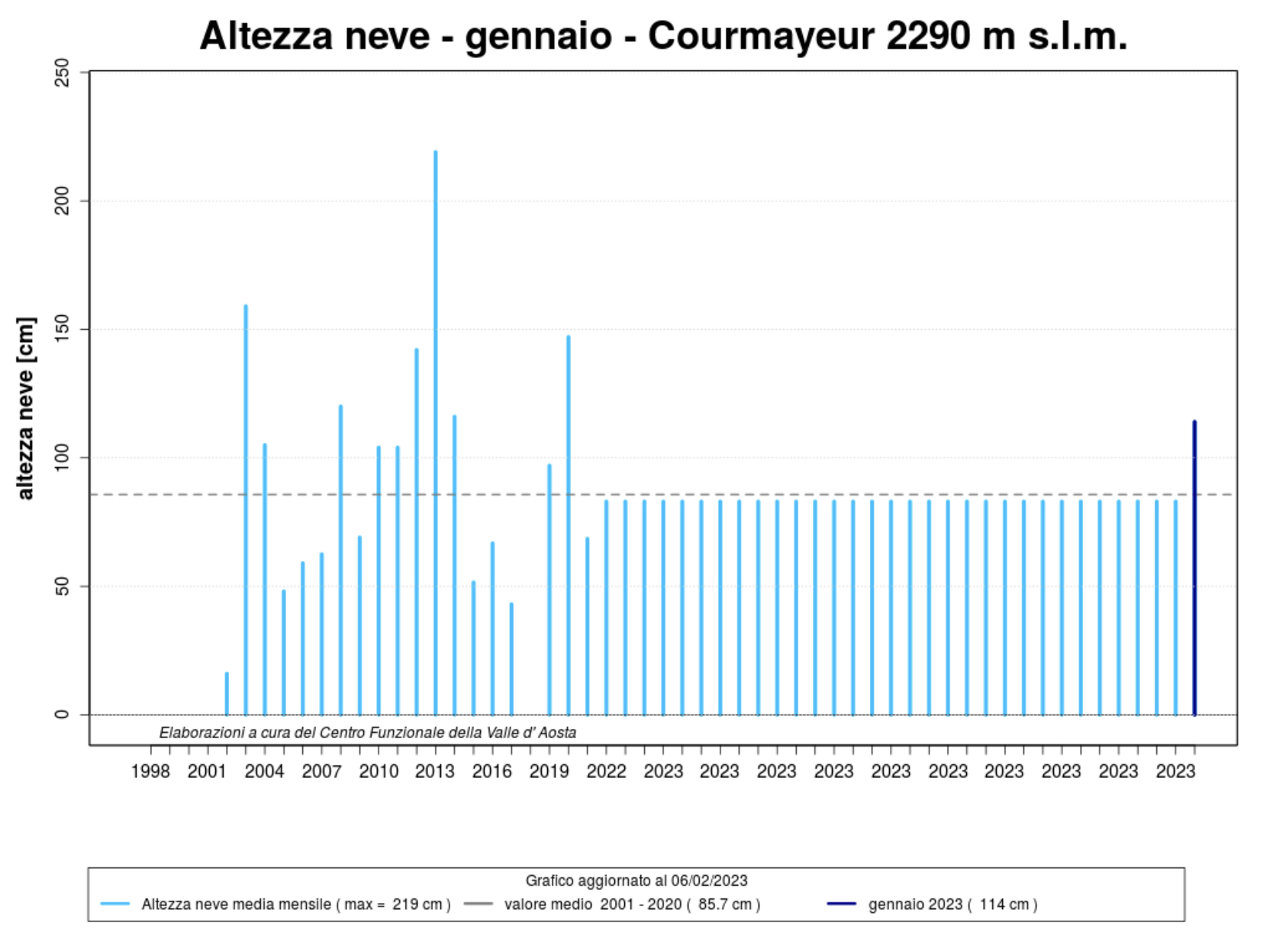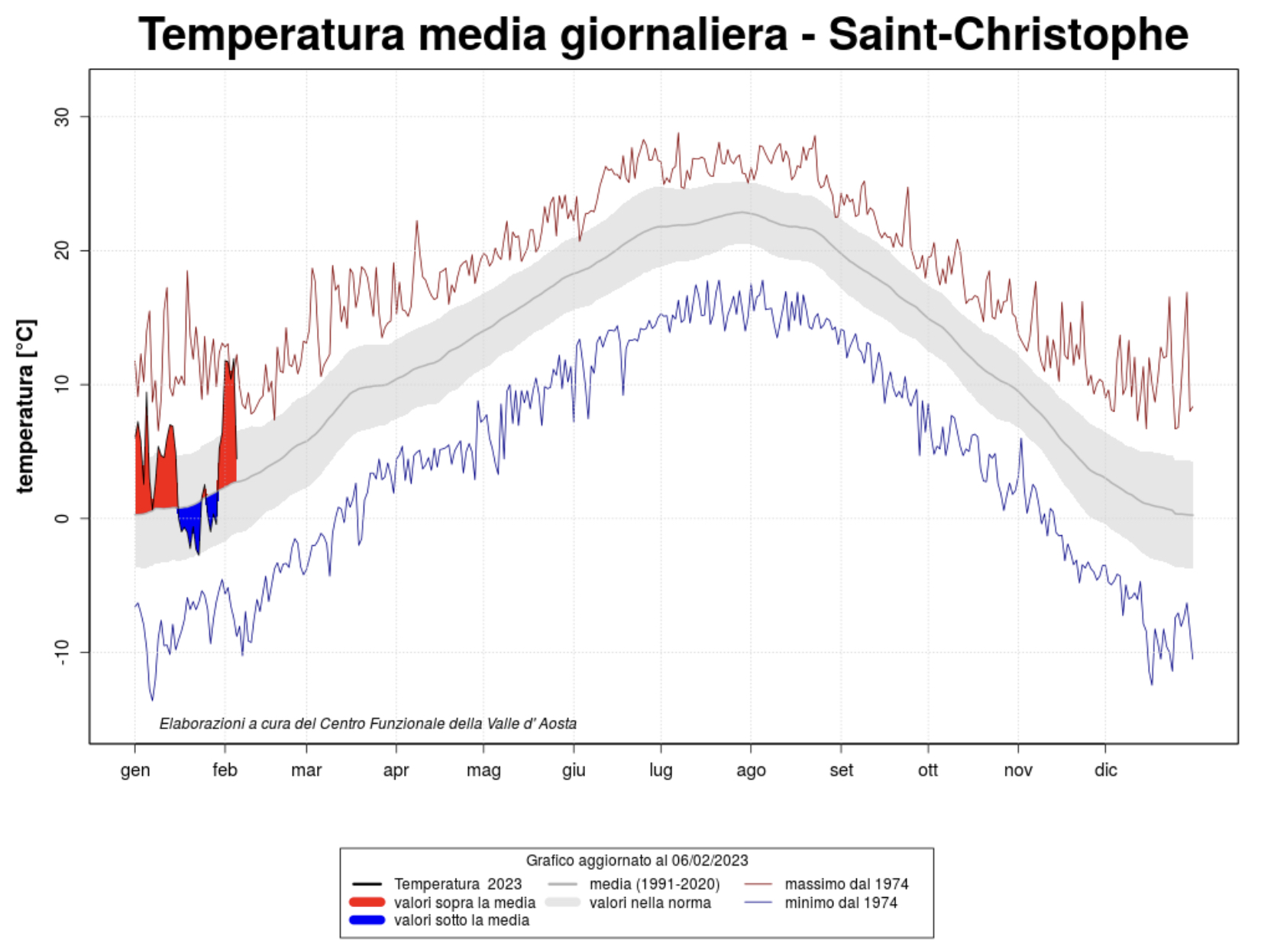 Stando ai primi dati reperiti da Arpa lungo il 2023, la temperatura tra Saint-Christophe e Issime si attesta lievemente sopra la media del periodo, con alcune giornate di freddo intenso che hanno connotato l’ultima settimana di gennaio.