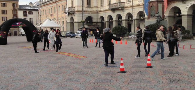 Tute, pantaloncini corti, palloni, una rete da pallavolo, ostacoli e corde. Non è la descrizione di una palestra ma di piazza Chanoux questa mattina. E’ infatti andata in scena la protesta di studenti e professori contro l’ormai cronica carenza di palestre per le scuole aostane.
