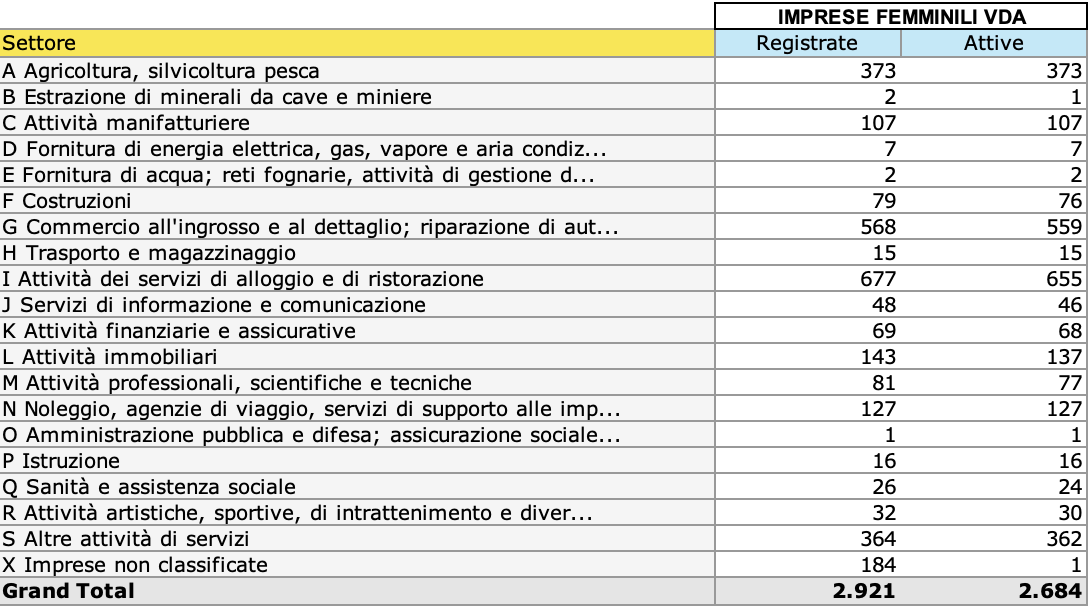 Per descrivere la situazione delle Imprese femminili in Valle d’Aosta, facciamo riferimento ai dati della Camera valdostana delle imprese e delle professioni.