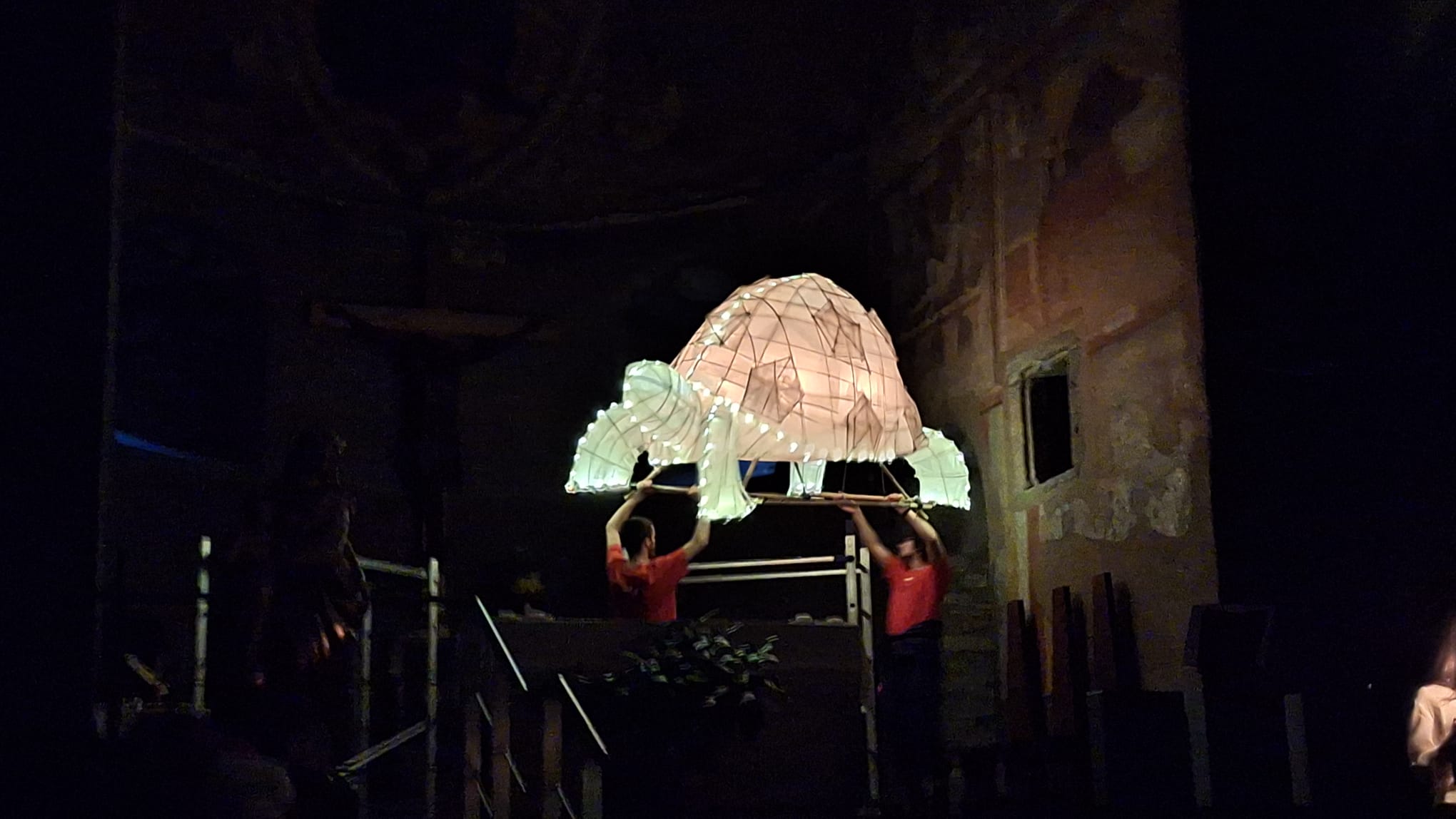 Ma perché il nome Performance delle fiammelle? Perché la fiammella è leggera e fragile, è il lumino che resta acceso la notte, che illumina volti e sguardi. Nella notte dei fuochi di San Pietro e Paolo, queste fiammelle sono diventate i bambini e le bambine di Saint-Vincent, che, con le grandi lanterne da loro costruite, hanno raccontato un mondo colmo di luce, speranza e sogni: il mondo delle fiammelle.