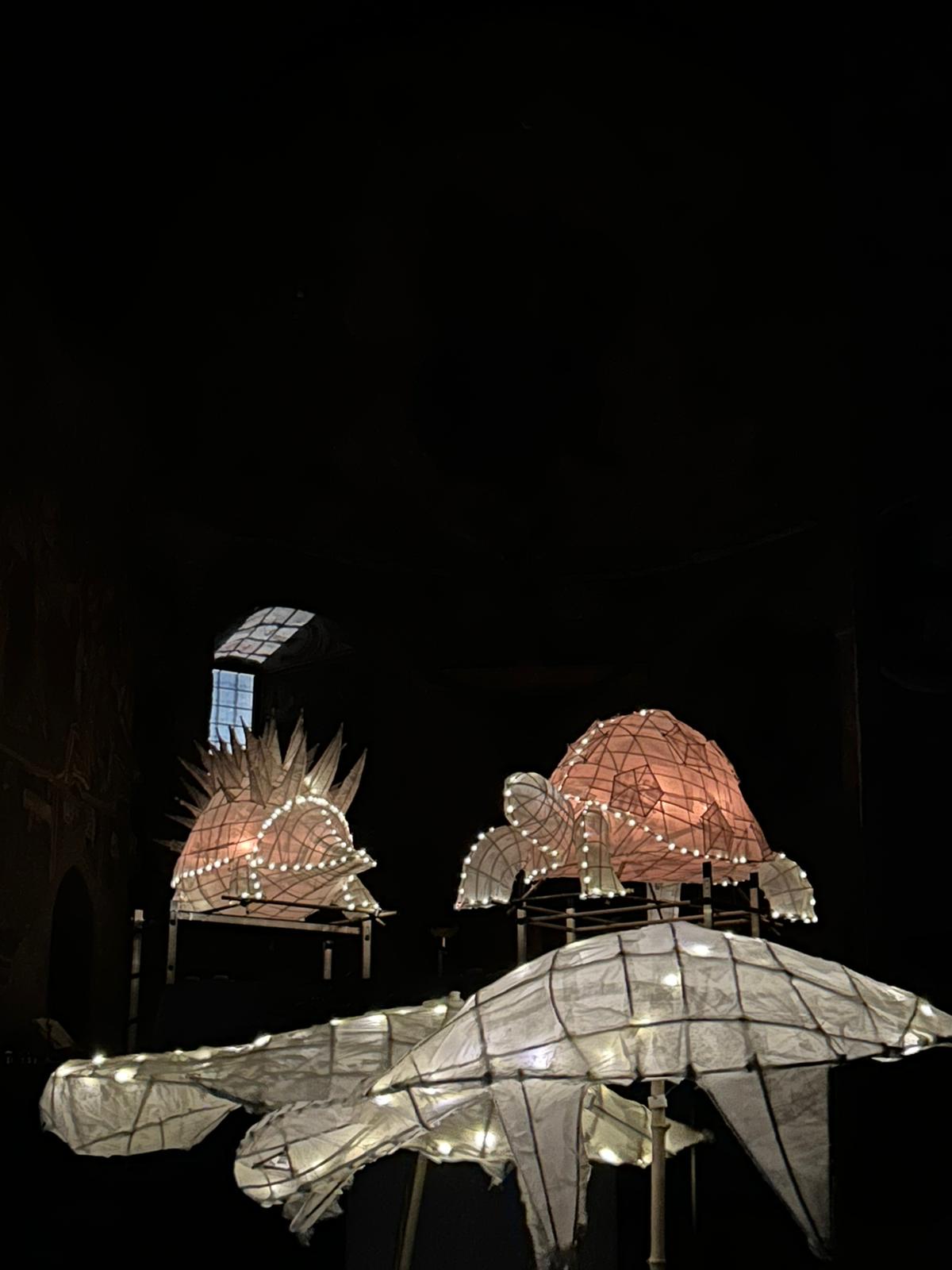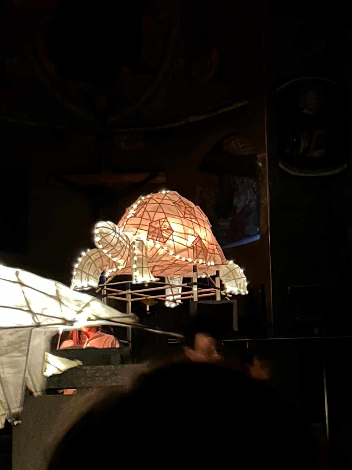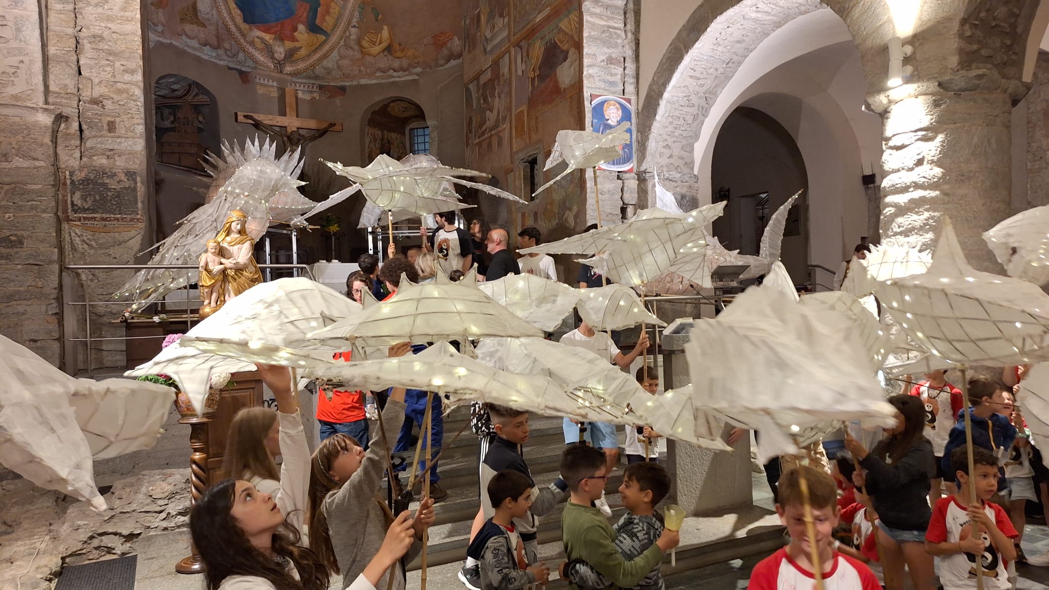 La performance purtroppo, a causa del diluvio universale, non si è svolta per il paese, ma all’interno della chiesa. Il tema al centro della parata, curato da Luca Liffredo e da Don Lorenzo Sacchi, parroco di Saint-Vincent, era la creazione del mondo, dalla Genesi alla Teogonia di Esiodo rivisitata.