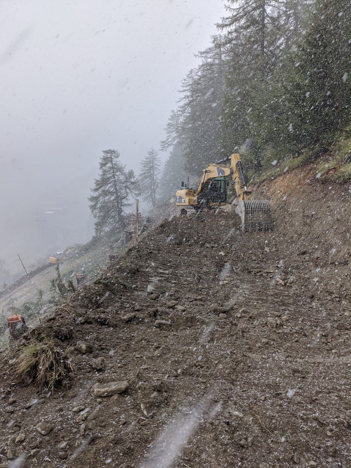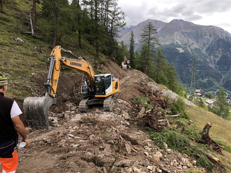 Nei prossimi giorni, ai mezzi presenti, si aggiungerà un dumper per il potenziamento dei movimenti terra e una perforatrice con la squadra specialistica per l’esecuzione degli ancoraggi delle reti paramassi da realizzare sulle gradonature.