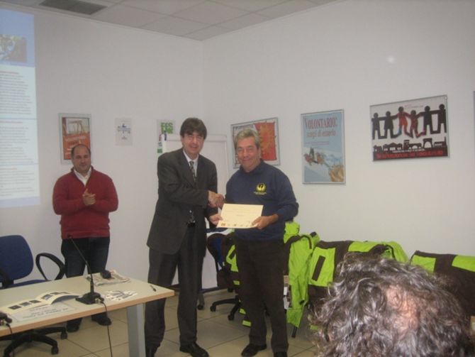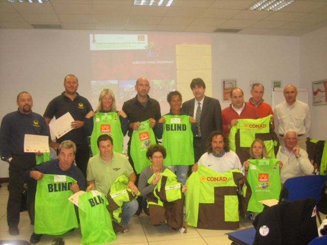 Al termine della conferenza stampa André Lanièce, vicepresidente del Consiglio regionale, Michele Tropiano, delegato Regionale del Comitato Paralimpico e Giuseppe Stanca, della catena di supermercati CONAD hanno anche consegnato gli attestati e le divise alle 19 guide volontarie di sci per non vedenti che hanno completato il corso "Io Vedo per te".