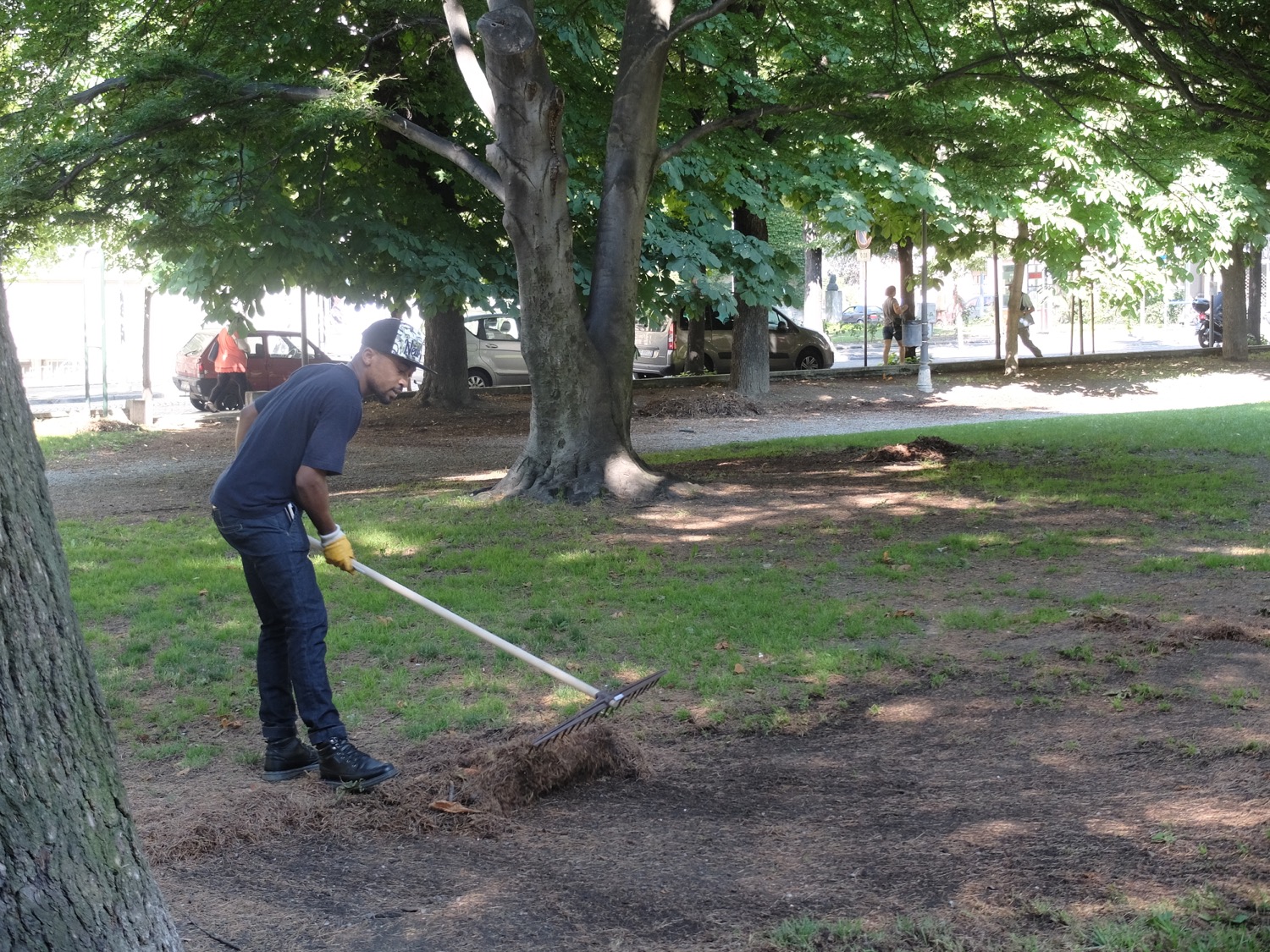 Per tre mesi, da luglio a settembre, armadi di scope e rastrelli, una ventina di giovani volontari dell’Associazione, aiutati da 8 richiedenti asilo ospitati dalla cooperativa Enaip e da 4 persone seguite dalla cooperativa L’Esprit à l’Envers, terranno pulito il parco da cartacce e rifiuti, si occuperanno delle aiuole e dei fiori.