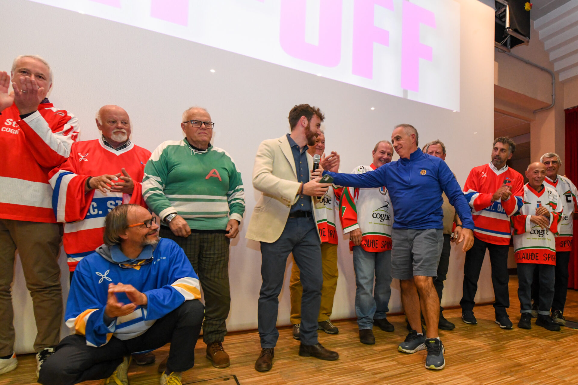 La sorpresa arriva dal Canada. Erano trent’anni che Lee Lo Presti non tornava a Cogne. Da quando prima nei prati di Sant’Orso e poi nello stadio di Revettaz, sulle sponde della Grand Eyvia, si giocava a hockey. L’alluvione del 2000 ha distrutto campo e tribune ma non ha cancellato i ricordi di chi ha fatto parte e ha tifato l’Hockey Club Sant’Orso. Una storia diventata un film grazie al regista Gaël Truc che l’ha raccontata nel cortometraggio Play-off presentato ieri sera – domenica 19 ottobre – al Cinema Grivola di Cogne davanti ad una sala gremita tra ex hockysti, tifosi di allora e curiosi. Tra loro c’era anche il canadese Lo Presti, che ha allenato la squadra tra il 1988 e il 1990.