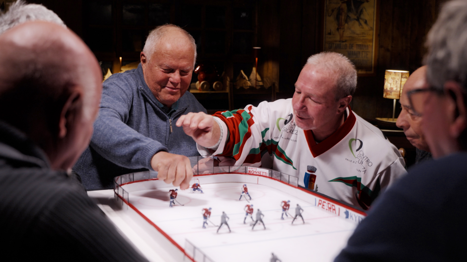 È stato il film di Truc a far tornare a galla i ricordi. Quando era poco più di un’idea sulla carta, “Play-off” ha vinto il concorso per cortometraggi “Match & Catch” della Film Commission Vallée d’Aoste, incontrando la casa di produzione Red Sled Films. “Volevo fare un film d’archivio raccontando qualcosa che oggi non c’è più – racconta il regista, originario di Cogne -. Mi è venuta in mente l’immagine della patinoire che io ho vissuto per qualche anno da bambino ma non sapevo praticamente niente dell’hockey. Ho contattato Elisabetta Allera, la figlia di Arturo, che mi ha indirizzato verso alcuni ex giocatori. Mi è bastato bere un caffè con ognuno di loro per capire che c’era un film da fare”.