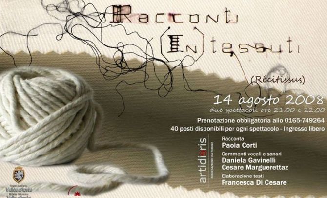 Il patrimonio di abbigliamento valdostano, in vetrina nello spazio espositivo Alpinart di Cogne inaugurato da poche settimane, sarà valorizzata giovedì 14 agosto dalla pièce teatrale “Racconti (in)tessuti”, spettacolo voluto da Fondation Grand Paradis come principale evento collaterale alla mostra “ABITI, racconti di abiti vissuti della tradizione valdostana”.