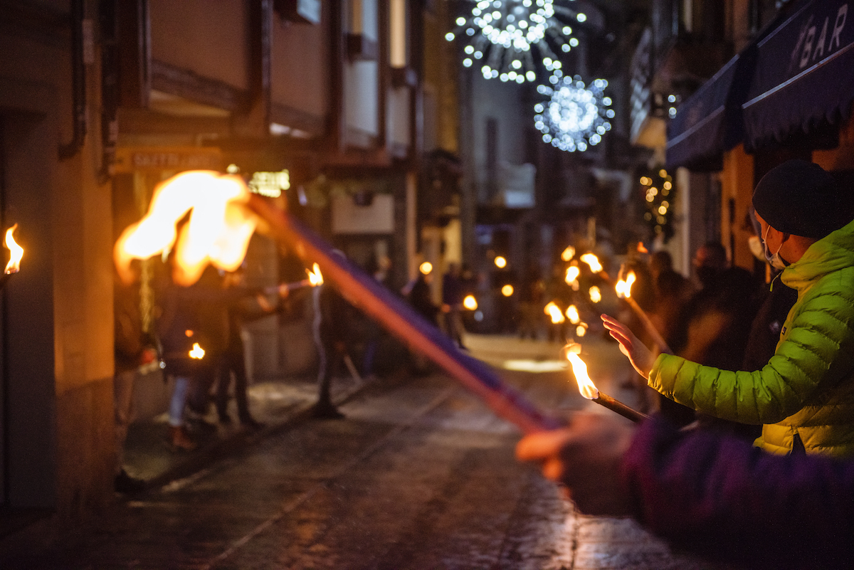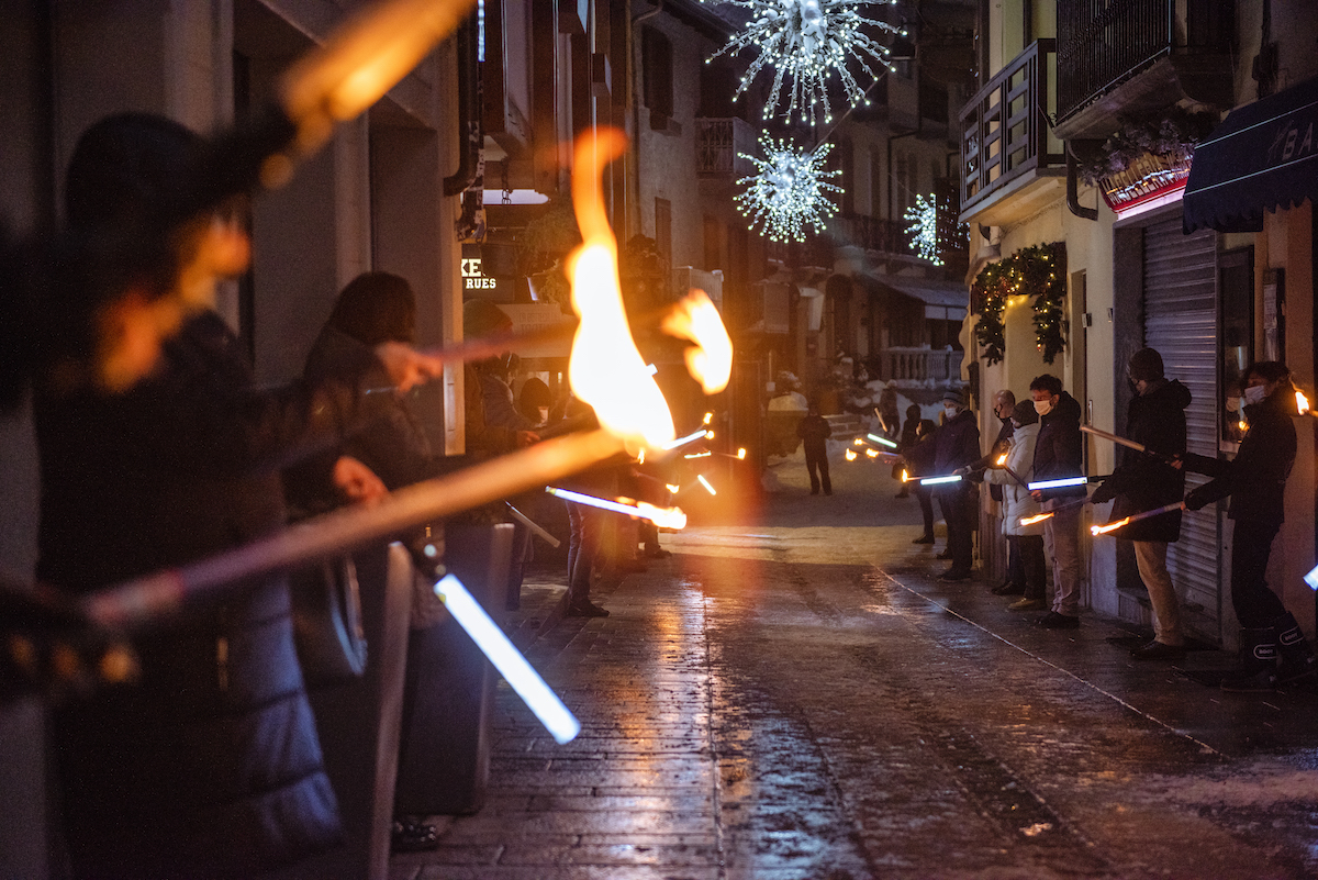 Courmayeur si è “accesa”, ieri, mantenendo viva la tradizione con la fiaccolata di fine anno. Un appuntamento diverso dal solito e senza pubblico, una “fiaccolata statica”, per rispettare le disposizioni in vigore per il contenimento dell’emergenza.