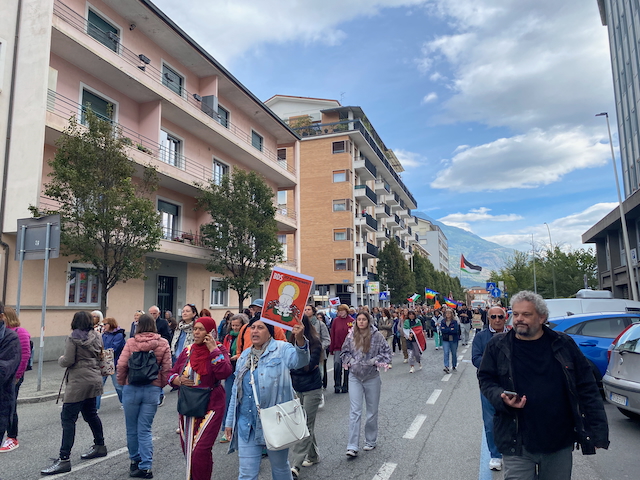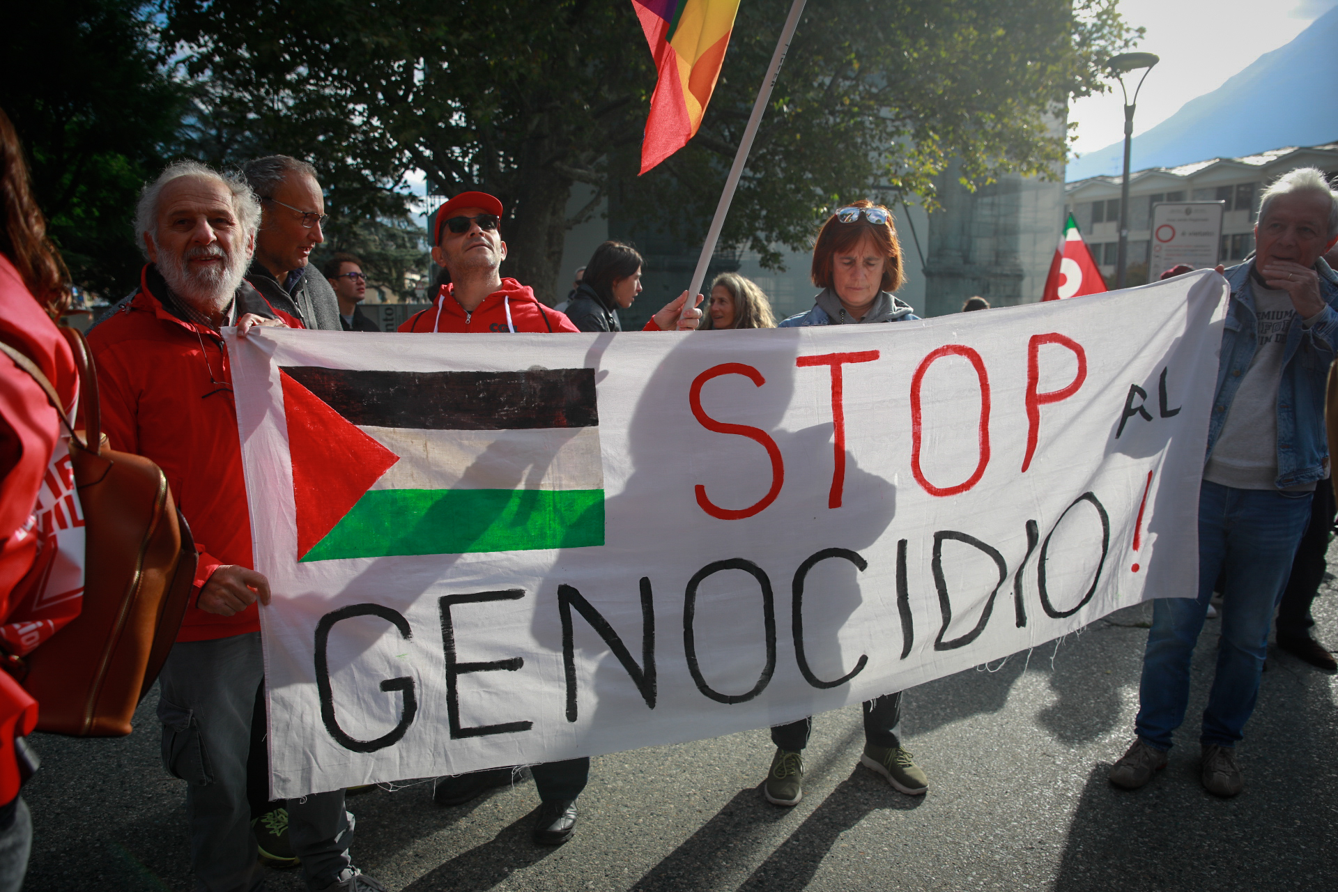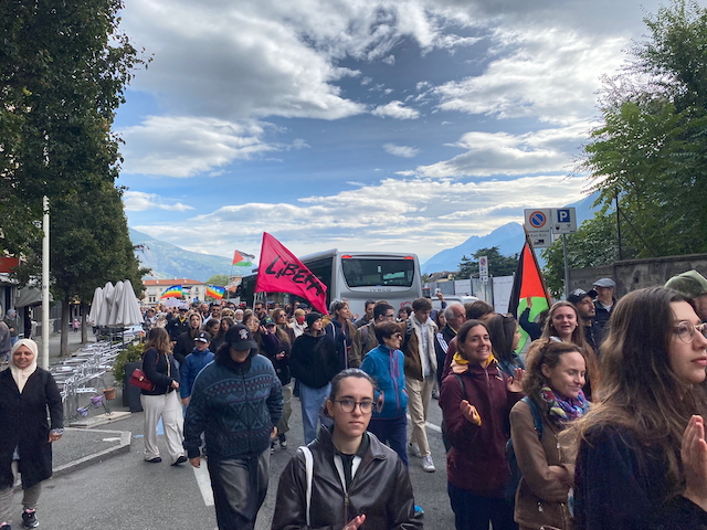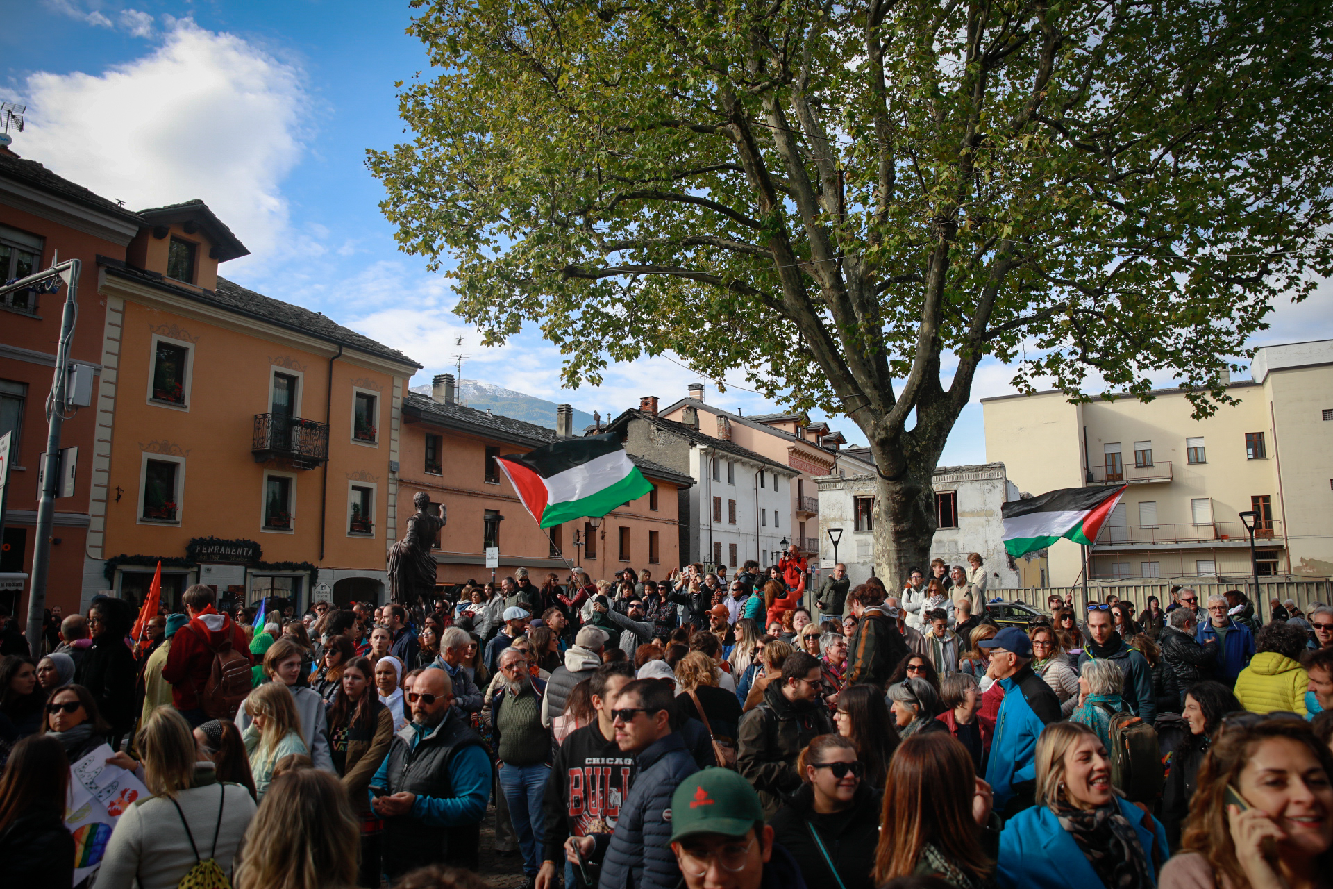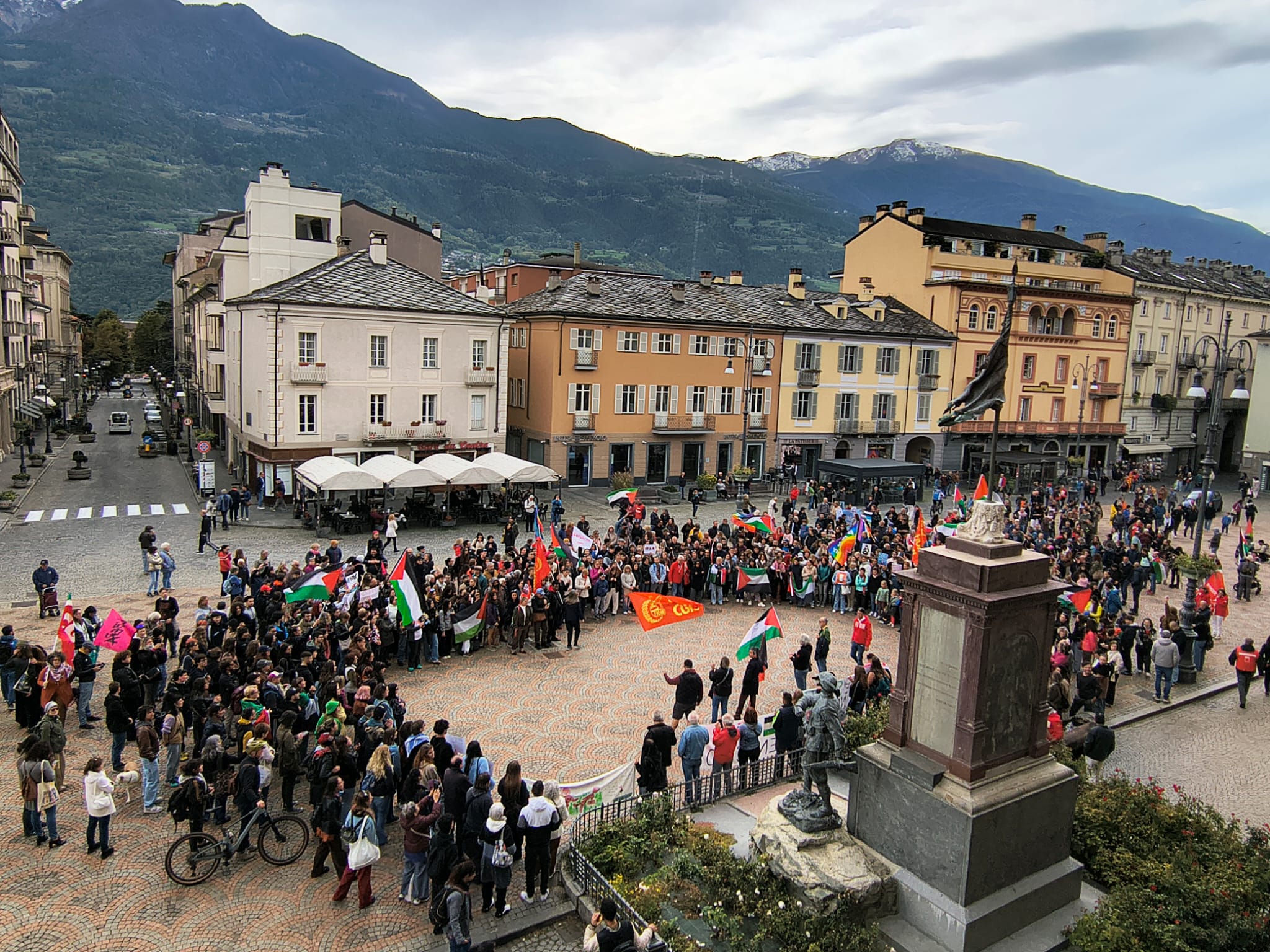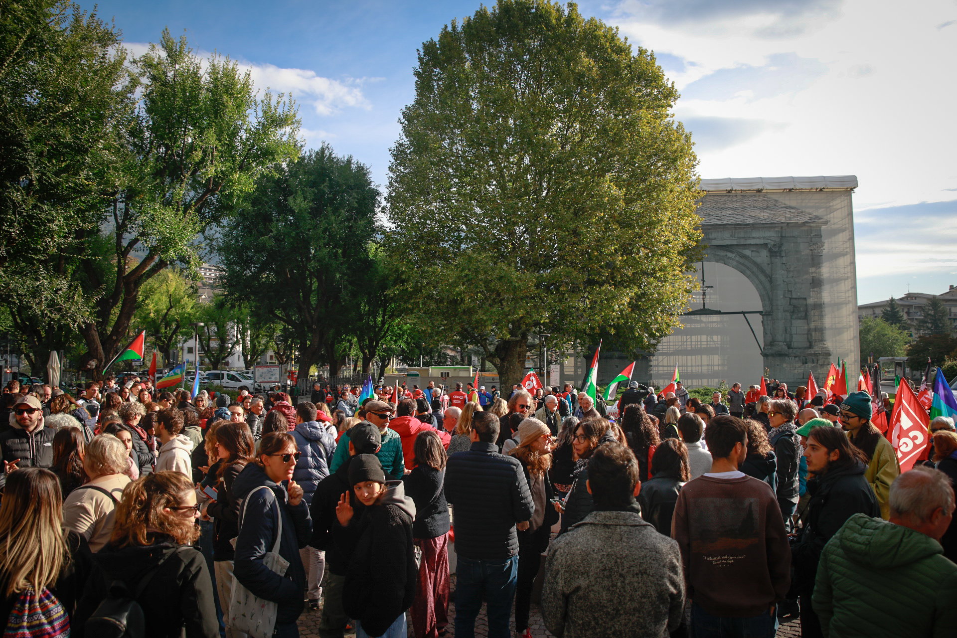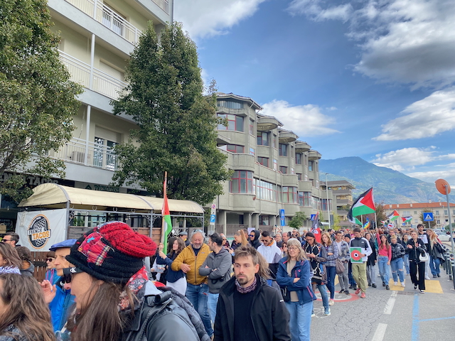 Oltre un migliaio di persone hanno preso parte questa mattina, venerdì 3 ottobre, allo sciopero generale, indetto a livello nazionale, per chiedere la pace in Palestina. Alla mobilitazione, che ha attraversato le vie di Aosta, si sono uniti via via centinaia di manifestanti, tra cui numerosi studenti e studentesse.