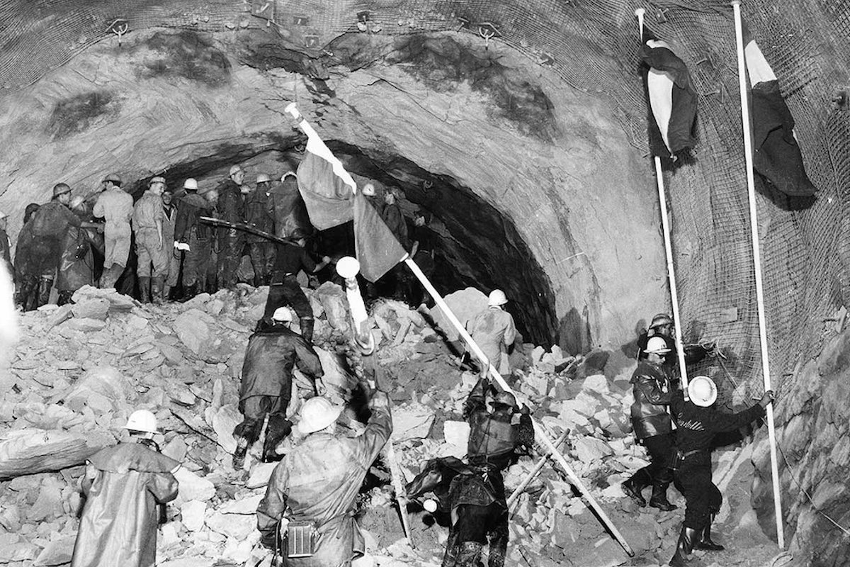 Iniziato il 12 gennaio 1959 sul versante italiano e il 1° giugno 1959 su quello francese, lo scavo del tubo lungo 11,6 km e largo 7 metri è durato tre anni, fino al 14 agosto 1962. In quella data, gli operai italiani e francesi hanno potuto unirsi e abbracciarsi, dopo che un’esplosione finale liberò l’ultimo diaframma di roccia tra i due Paesi.