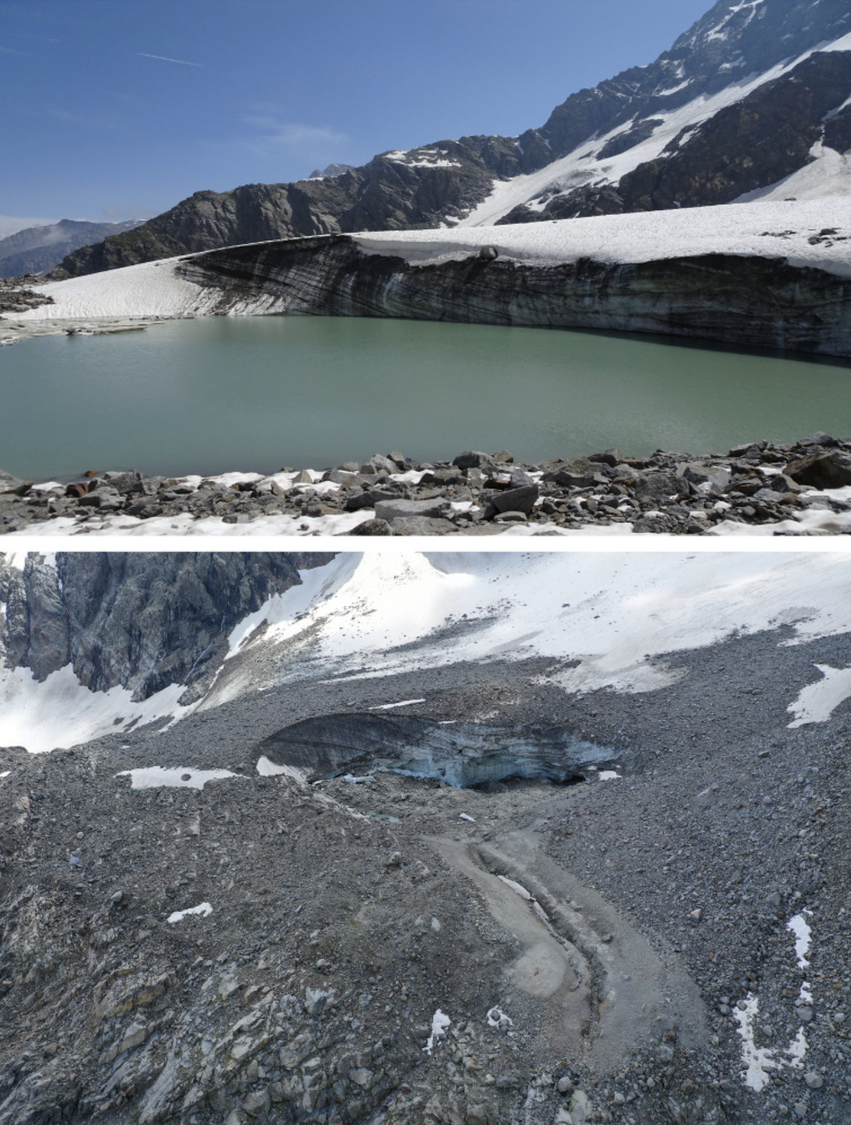 Il lago, monitorato dal 2016 a seguito di un evento di rotta glaciale del 14 agosto dello stesso anno, è stato oggetto di un intervento specifico nel 2018, legato all’espansione ulteriore del bacino rispetto a due anni prima.