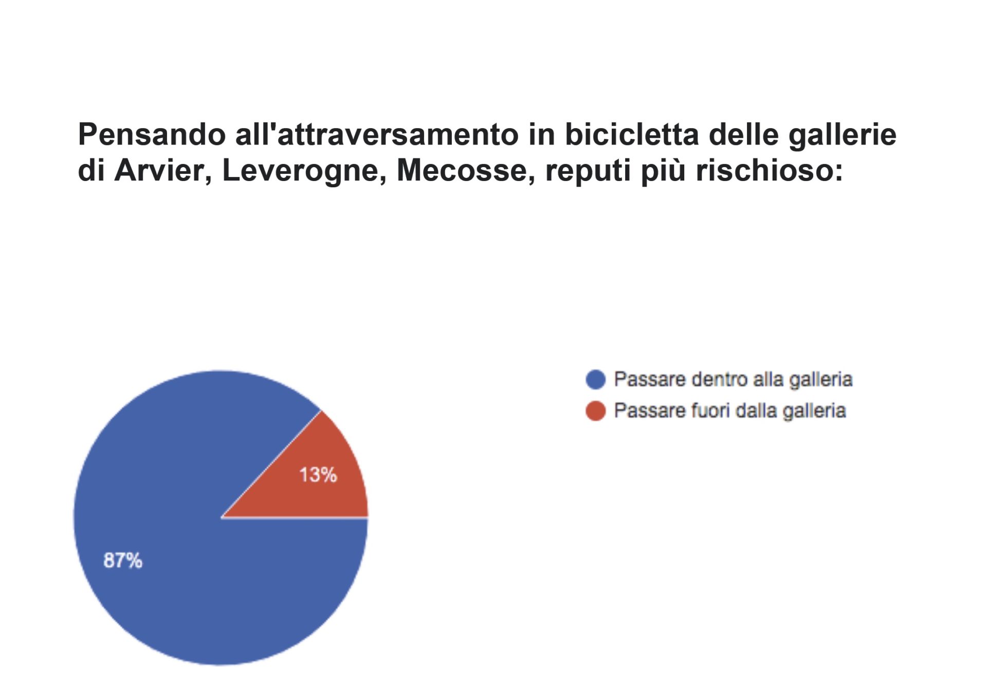 “Dai risultati – scrive Fiab Aosta à Vélo – emerge che il rischio percepito dai ciclisti di passare in galleria è molto alto e la richiesta di assumersi le proprie responsabilità a Anas”.
