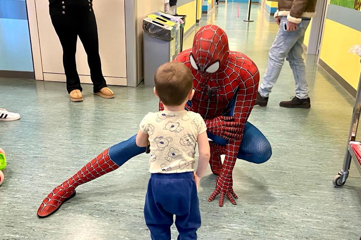 Al Beauregard Spiderman ha portato giochi e spillette che ha distribuito ai piccoli, incantati dalla visita del supereroe e dalle sue parole di incoraggiamento e fiducia.