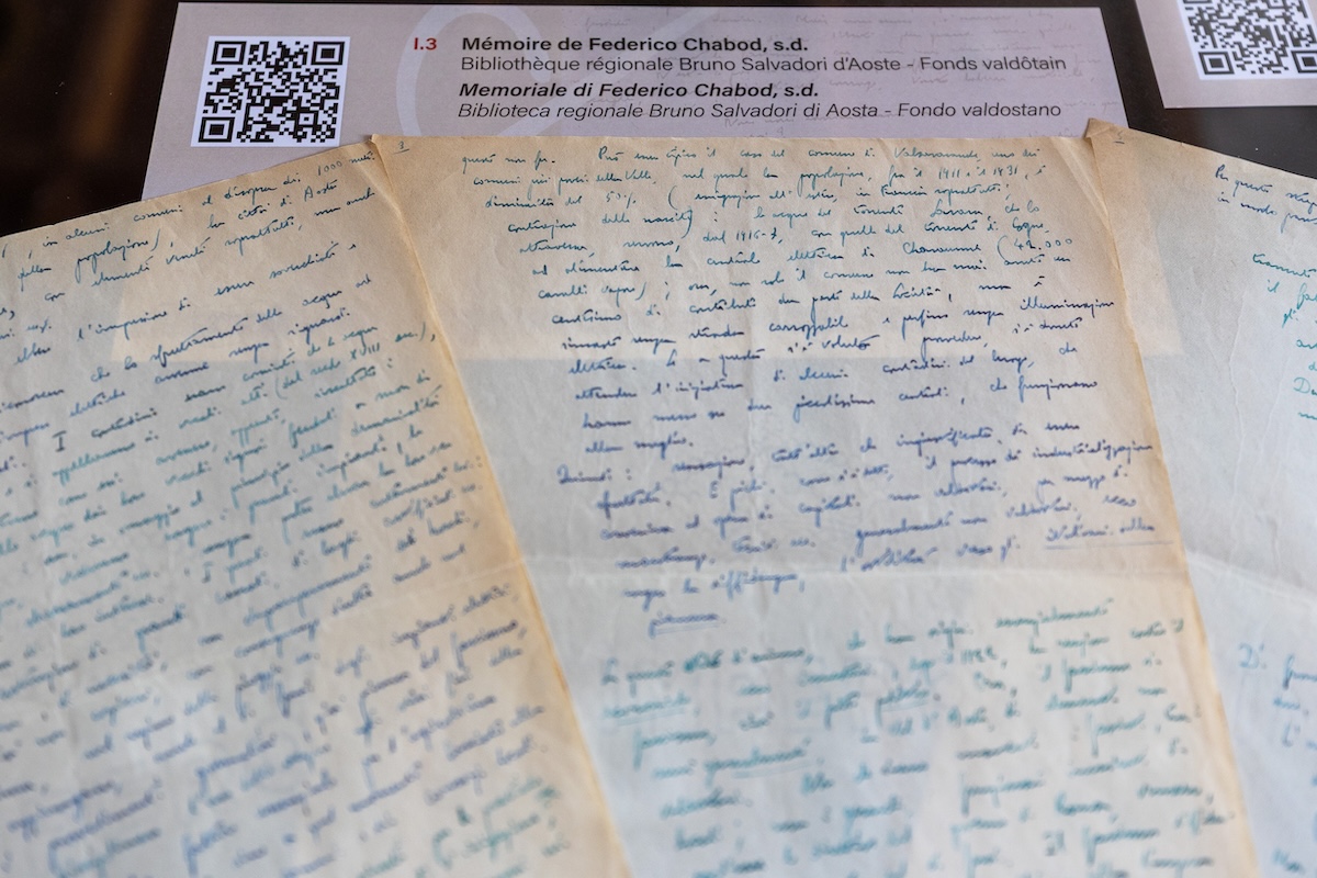 L’esposizione vuole far scoprire, attraverso una piccola selezione di documenti e fotografie originali e ancora poco conosciute, l’immenso patrimonio documentale custodito dall’Amministrazione regionale e dall’Istituto Storico della Resistenza e della società contemporanea della Valle d’Aosta.