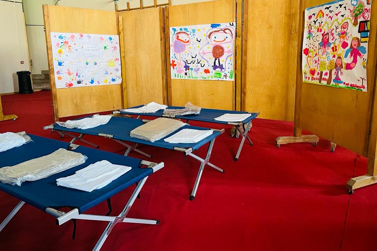 La palestra di Fénis allestita per accogliere i profughi ucraini