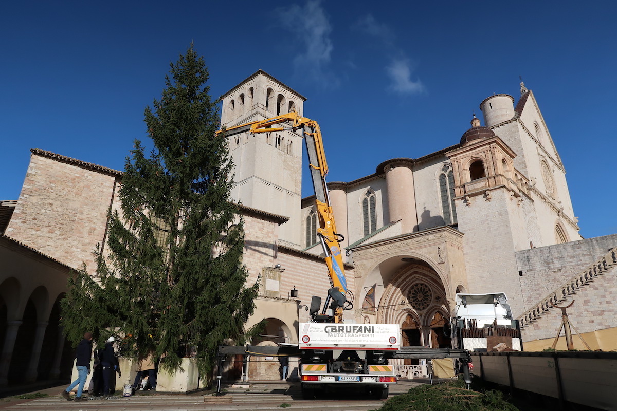 È stato posizionato oggi nella piazza inferiore della Basilica di San Francesco di Assisi un albero di Natale proveniente dalla Valle d’Aosta, che sarà acceso durante la cerimonia in programma nella serata dell’8 dicembre prossimo.