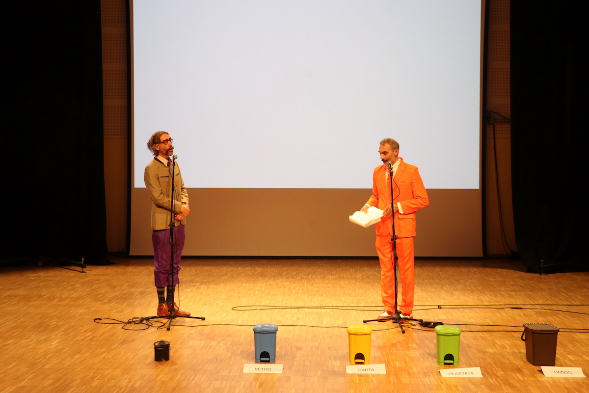 Allo spettacolo, proposto da Manicomics Teatro, hanno partecipato un centinaio di alunni di tre scuole superiori valdostane: l’Institut Agricole Régional, l’Istituto Regina Maria Adelaide ed il Liceo Scientifico e Linguistico E. Bérard.