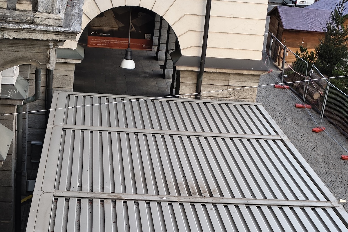 Al balconcino, spiega una nota del Comune di Aosta, era stato ancorato un tirante per fissare le luminarie di piazza Chanoux, sopra l’allestimento del Marché Vert Noël.