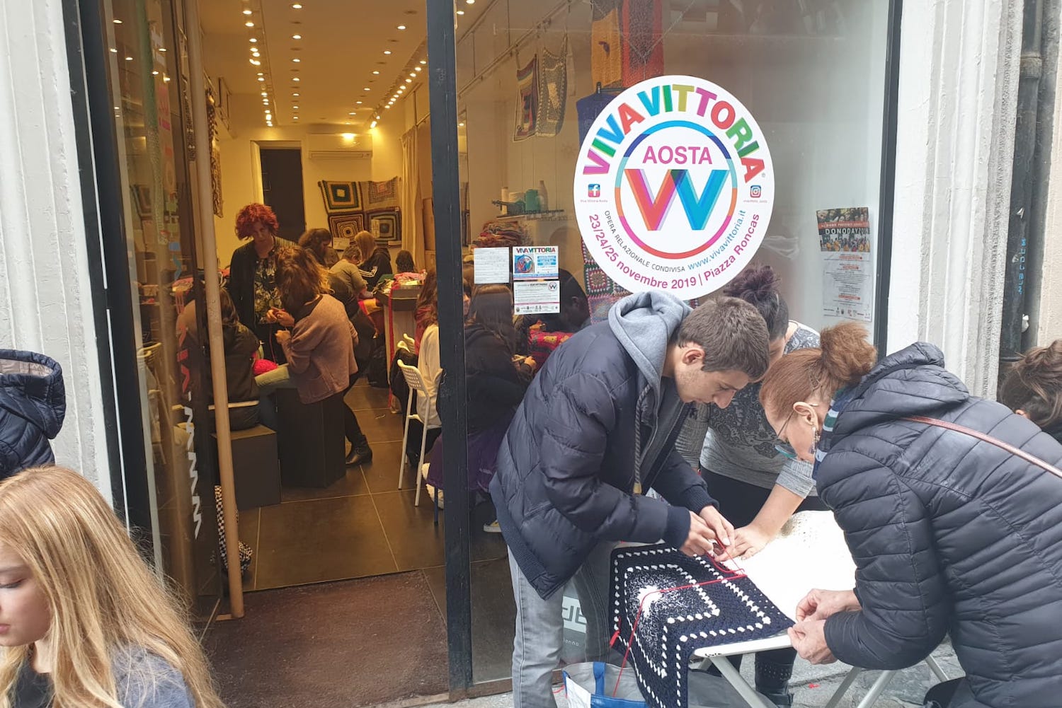 Ad un mese esatto dall’evento di novembre, che vedrà piazza Roncas, ad Aosta, riempirsi dei colori dei quadrati fatti a maglia, Viva Vittoria comincia – letteralmente – a “tessere la sua tela”.