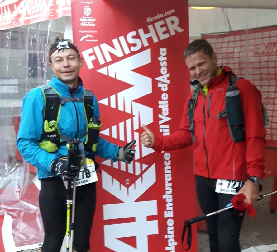 Si è conclusa poco dopo le 7 di questa mattina, in maniera vittoriosa, la marcia trionfale della coppia russa composta da Maxim Vafin e Andrey Antipinskiy al 4K Alpine Endurance Trail. A lungo in testa dopo il ritiro dei battistrada Corrado Besenval e Luca Frutaz al rifugio Magià, hanno tagliato il traguardo completando i 350 km del percorso in 118 ore 12 minuti e 57 secondi.