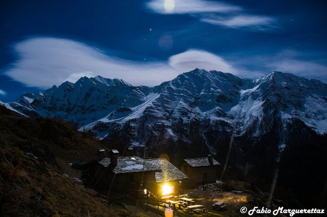 Il 5 aprile dopo l’impedibile cena preparata da Lorenzino Cosson (la vera polenta fatta con “l’oula” e cotta sul fuoco a legna) le Guide presentano “La Veillà della montagna”: sarà un momento per vivere la montagna attraverso racconti ed immagini di ambienti magnifici e unici, di animali maestosi e misteriosi che li popolano, di tradizioni antiche e di epiche ascensioni di impavidi alpinisti. Il tutto al cospetto del maestoso Monte Bianco.