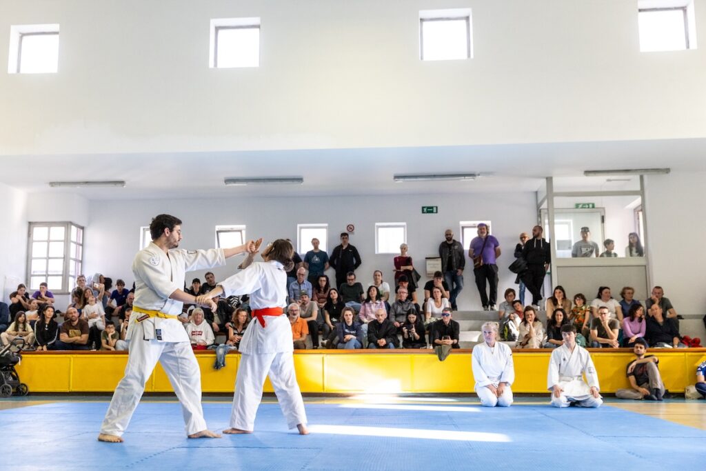 Sabato pomeriggio tante persone si sono ritrovate per approfondire, scoprire – e riscoprire – il mondo delle arti marziali: uomini e donne di tutte le età sono scese sui quattro tatami per conoscere le diverse discipline, dal gesto tecnico alla filosofia che le guida. Gli stessi iscritti alle quattro scuole hanno voluto provare le altre discipline, spinte dalla voglia di scoperta e confronto. A concludere l’evento è stata l’esibizione delle quattro scuole.