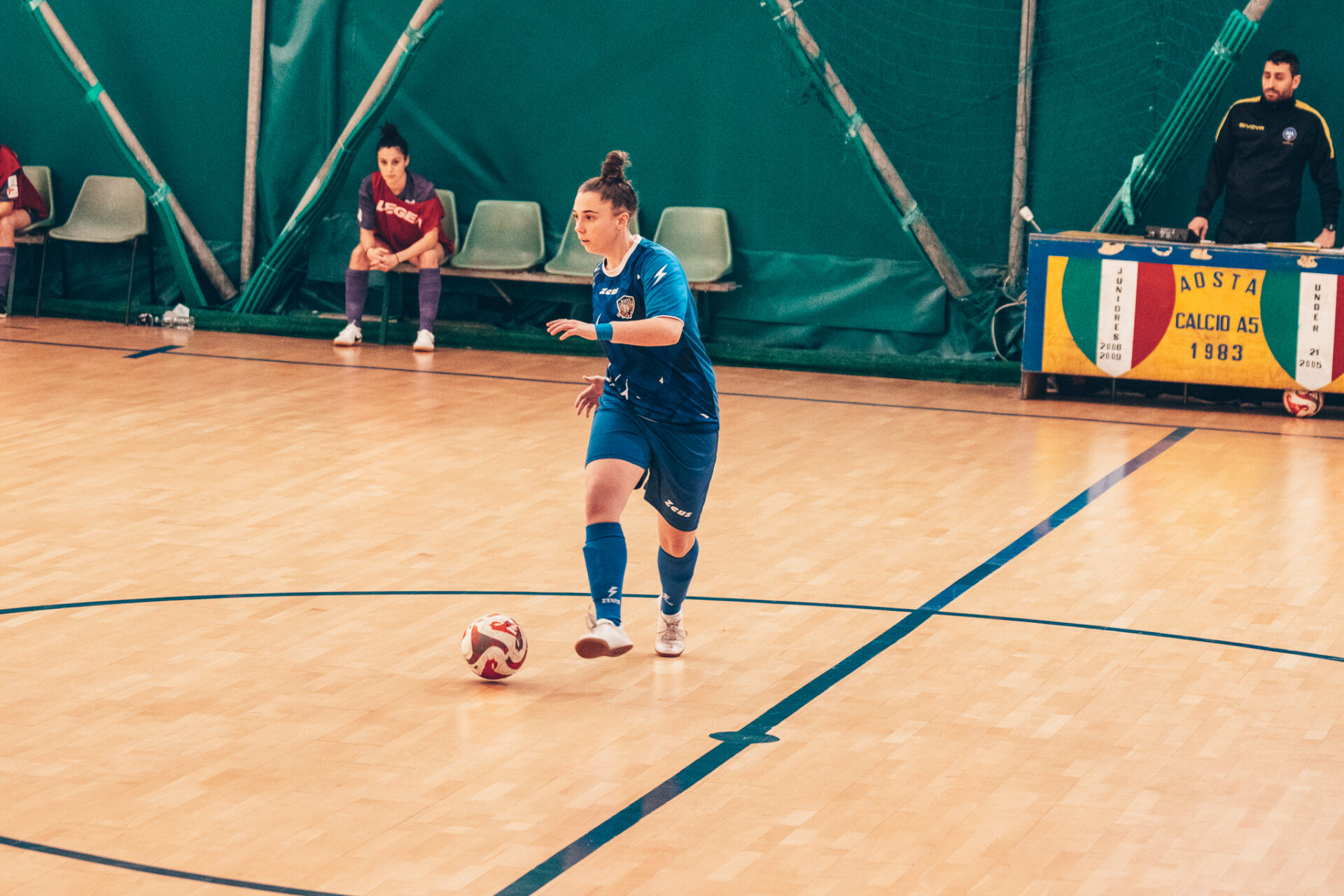 Al 13’40” finalmente l’Aosta trova il vantaggio: Rizzo ruba palla e insacca l’1-0. Nei minuti finali della prima frazione, l’Aosta sfiora più volte il raddoppio, prima con Cheli e poi con Bionaz, ma il primo tempo si chiude in vantaggio per le padrone di casa per 1 a 0.