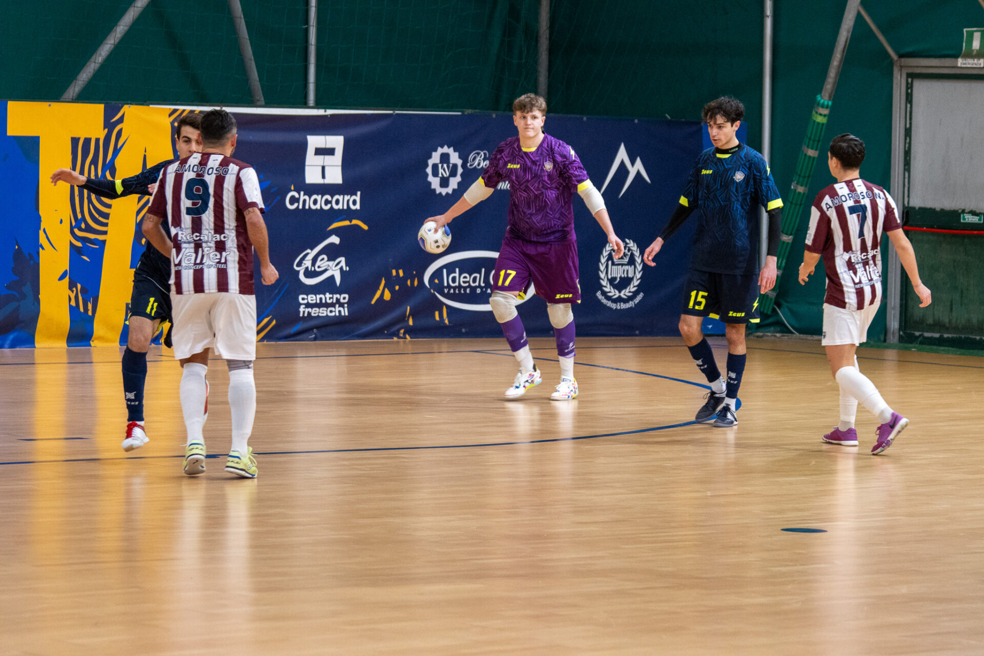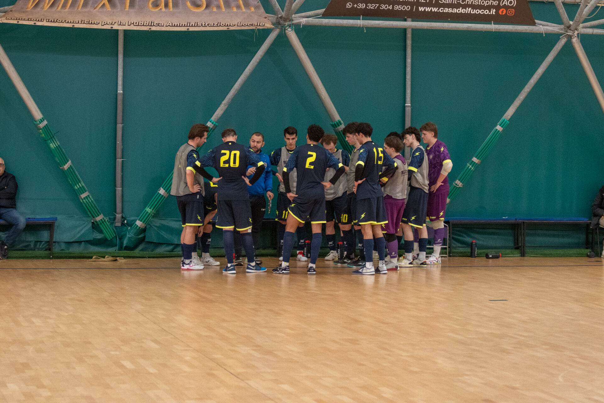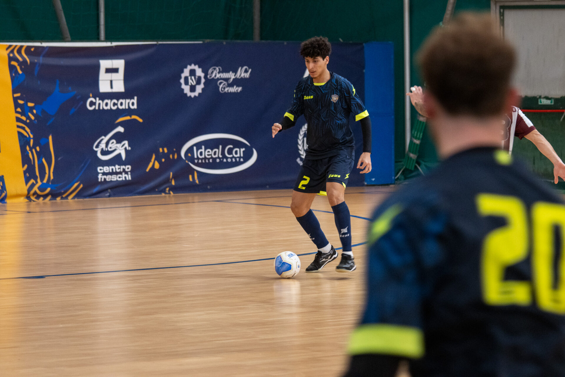 Al 15° minuto Nassiri preciso nell’angolino dalla sinistra e con una tripletta personale fissa il risultato sul 5-4. Nel finale il Cornedo si gioca il tutto per tutto con il portiere di movimento. Rossero è decisivo con tra cui una parata in spaccata sul secondo palo al 18’30”. A 13 secondi dal fischio finale il portiere di movimento ospite viene espulso per un duro intervento su Menegatti, quindi l’Aosta deve solo gestire gli ultimi secondi. Finisce 5-4. Vittoria sofferta ma meritata contro una squadra fisica e tecnica.