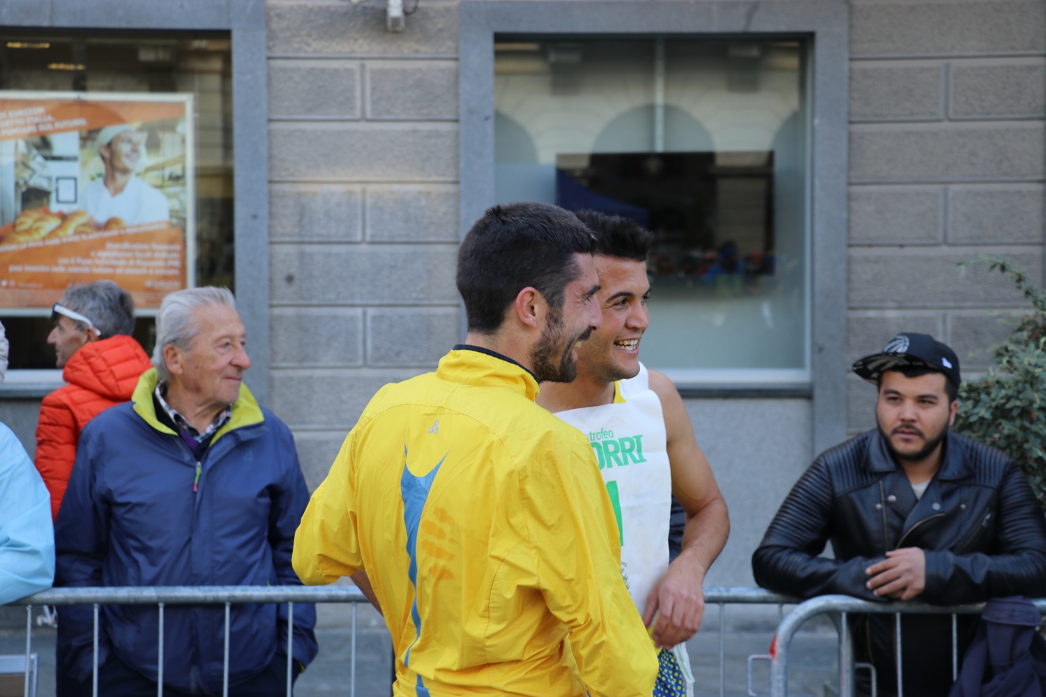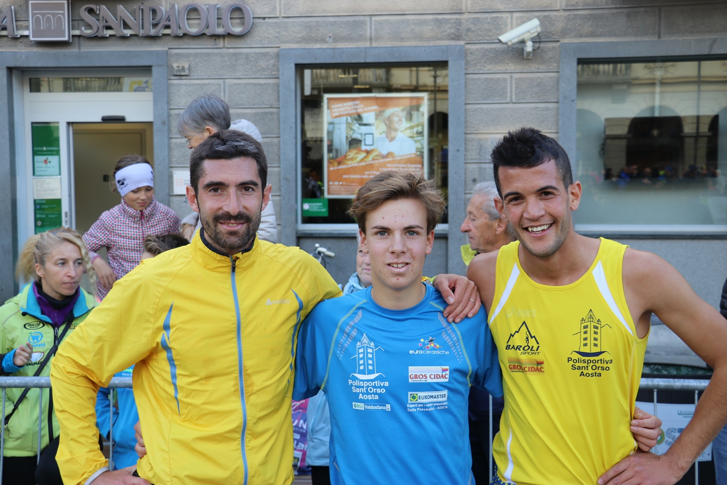 Seconda vittoria consecutiva per Lorenzo Brunier e Henri Aymonod a cui si è aggiunto, quest’anno, Samson Mungai Kagia, secondo classificato alla MezzAosta un mese fa. La staffetta (3×4 km) ha fatto registrare un tempo totale di 35’05”27, rimanendo sempre in vetta. Kagia è risultato anche l’atleta più veloce, concludendo i 4 km in 11’30”40, appena 27 centesimi più veloce di Omar Bouamer, secondo con i compagni di squadra della Polisportiva Sant’Orso Mikael Mongiovetto ed il giovane Alberto Ramellino (totale di 35’57”14). Sul terzo gradino del podio l’Atletica Cogne Aosta (36’13”67) di Alessandro Benati, Alex Ascensi e Marco Ranfone. “Sono contento di essere qui e di aver vinto per il secondo anno consecutivo”, racconta Aymonod. “Sono reduce da un quinto posto ieri al Vertical di Fully, dove ho fatto un grande tempo rispetto agli anni prima. Ora tolgo le scarpette ed inizio ad allenarmi per la stagione dello scialpinismo”. Soddisfatto anche Mongiovetto: “Non ero mai arrivato secondo al 7 Torri, e sono contento per il tempo che ho fatto [11’56”54, ndr]”. Omar Bouamer ci scherza su, dopo essere arrivato nuovamente secondo con la sua staffetta alle spalle dell’amico Lorenzo Brunier: “Solo così può battermi, ma intanto ho fatto un tempo migliore del suo”, dice ridendo.