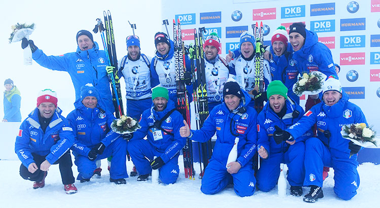Erano sei anni che l'Italia non saliva sul podio in questa specialità, proprio a Oberhof nel gennaio 2012, quando si imposero Christian De Lorenzi, i fratelli Dominik e Markus Windisch e Lukas Hofer.