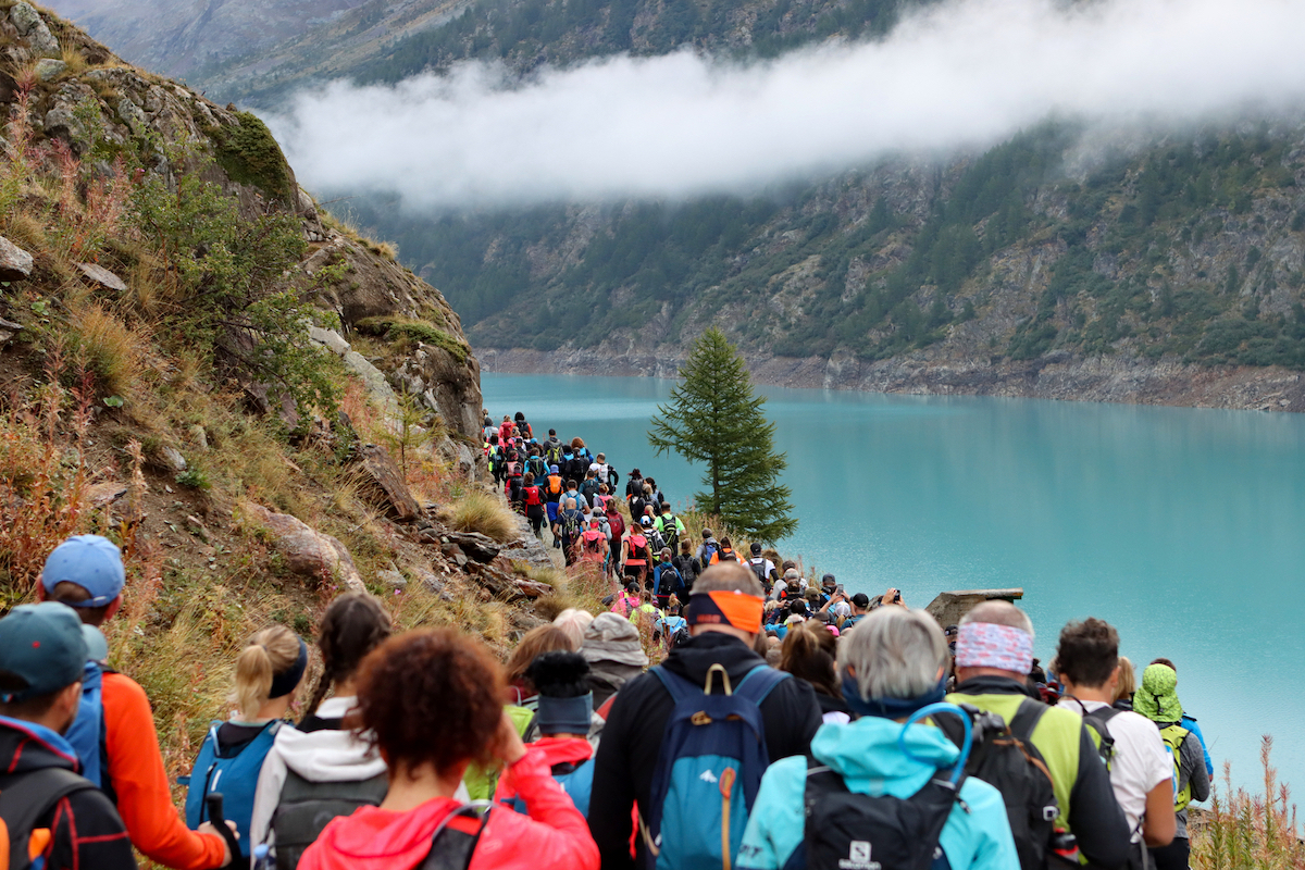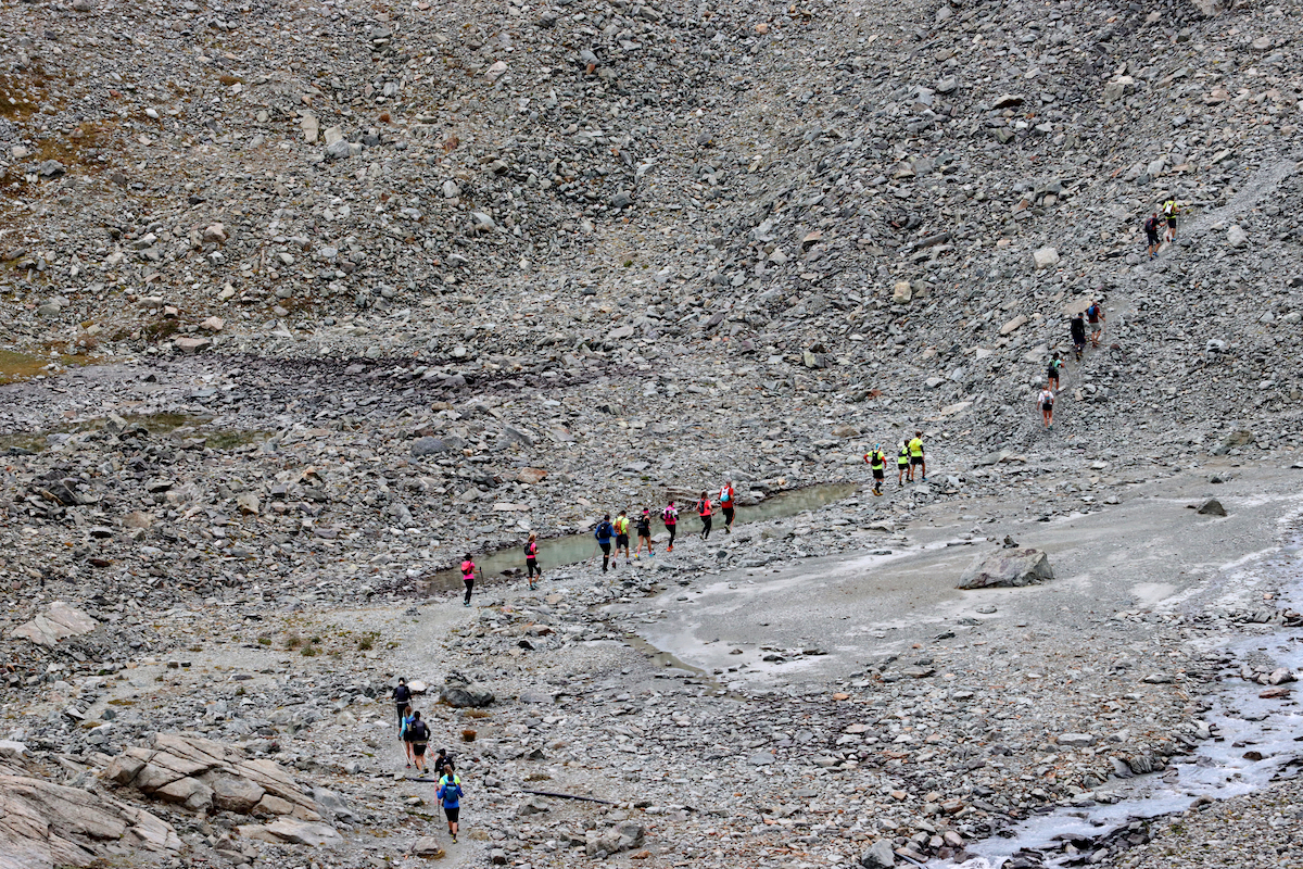 Poco dopo la partenza – la diga Place Moulin di Bionaz – la situazione è migliorata in modo netto, gli elicotteri hanno potuto alzarsi in volo e solo in quel momento. Con i 690 concorrenti già lungo il percorso, è stato confermato l’attraversamento del ghiacciaio e l’arrivo ad Arolla.