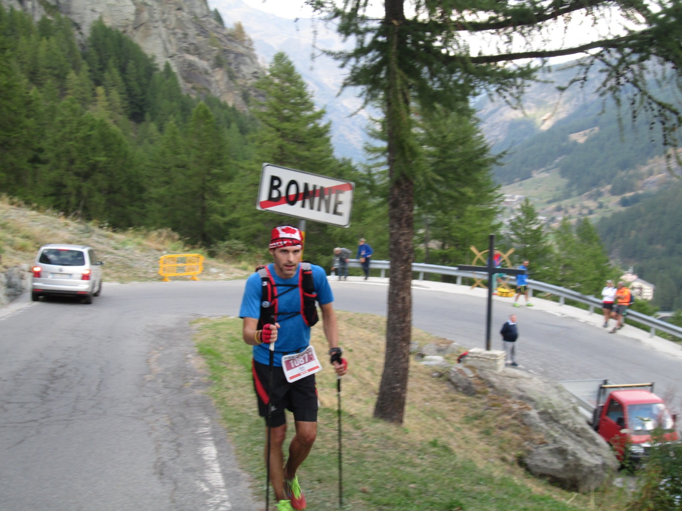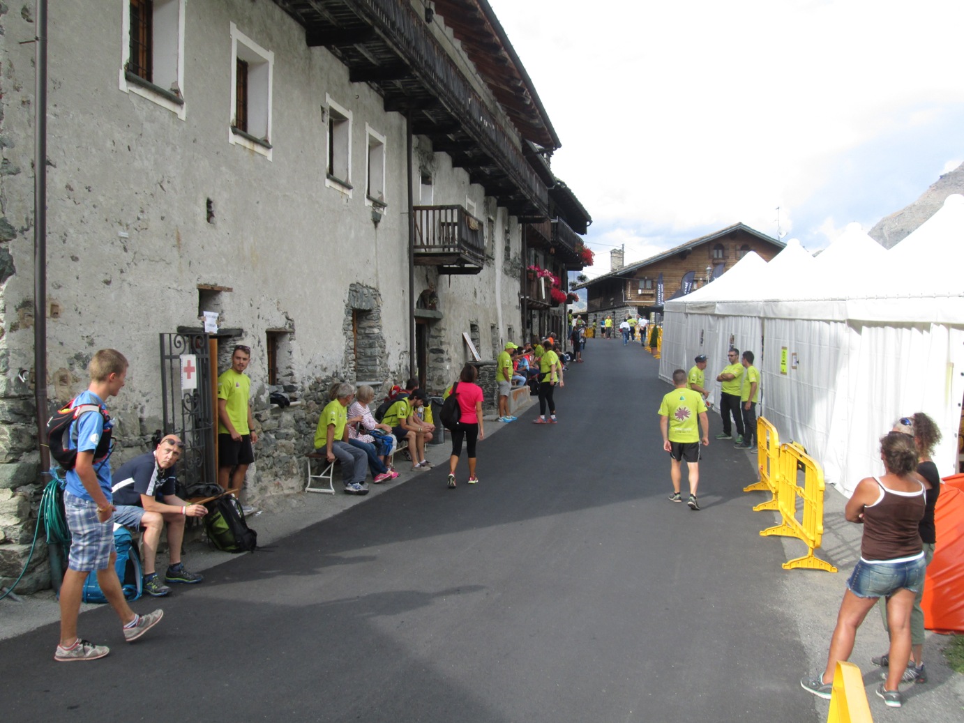 Vista anche la concomitanza con la Bataille des Reines, già alle 16 la polizia locale di Valgrisenche ha consigliato di lasciare l’automobile prima del capoluogo e prendere la navetta gratuita che porta all’Hotel Perret in località Bonne. Dalla base gli atleti percorrono la strada che porta in fondo all'antico bacino lacustre, per poi raggiungere l’Epée lungo il sentiero che attraversa un bosco di larici monumentali, con secoli di vita sulle spalle. La base vita di Bonne è molto raccolta e dà molto l'idea del villaggio; è divisa in diversi edifici e la procedura per i runners, nel suo insieme, risulta forse un po’ macchinosa: prima il passaggio sotto lo stand del cronometraggio in entrata, poi l’ingresso nell’edificio della mensa (che Breton non aveva visto, tirando dritto), a cui segue il recupero delle borse nel tendone. Gli atleti devono poi attraversare la strada per entrare nell'edificio dove si trovano le toilettes e le docce, separato dal quello dell’infermeria, ed infine passare dal tavolino del cronometraggio in uscita. Questo, oltretutto, obbliga l’organizzazione ed i molti volontari a dover bloccare le automobili che passano.