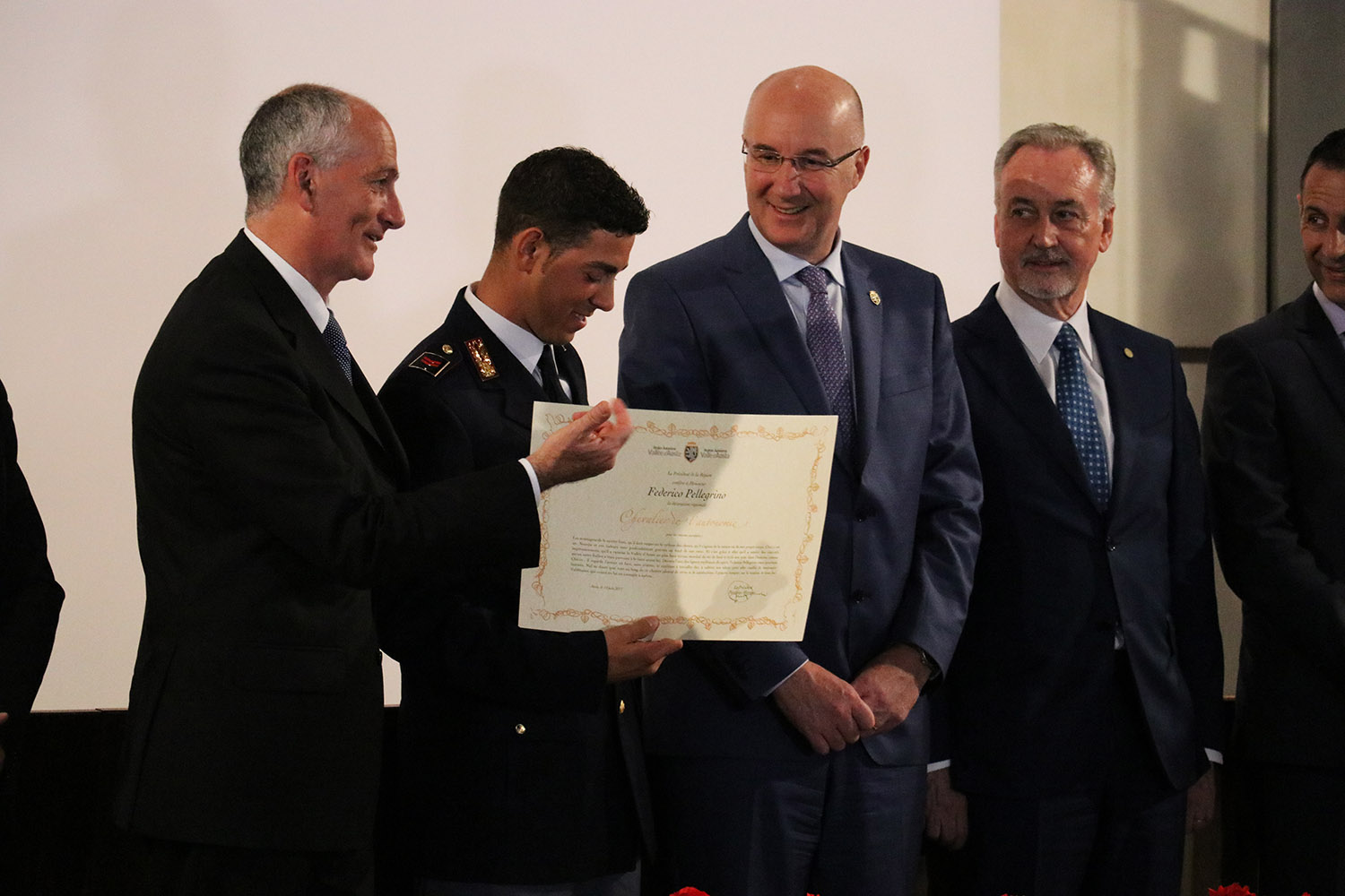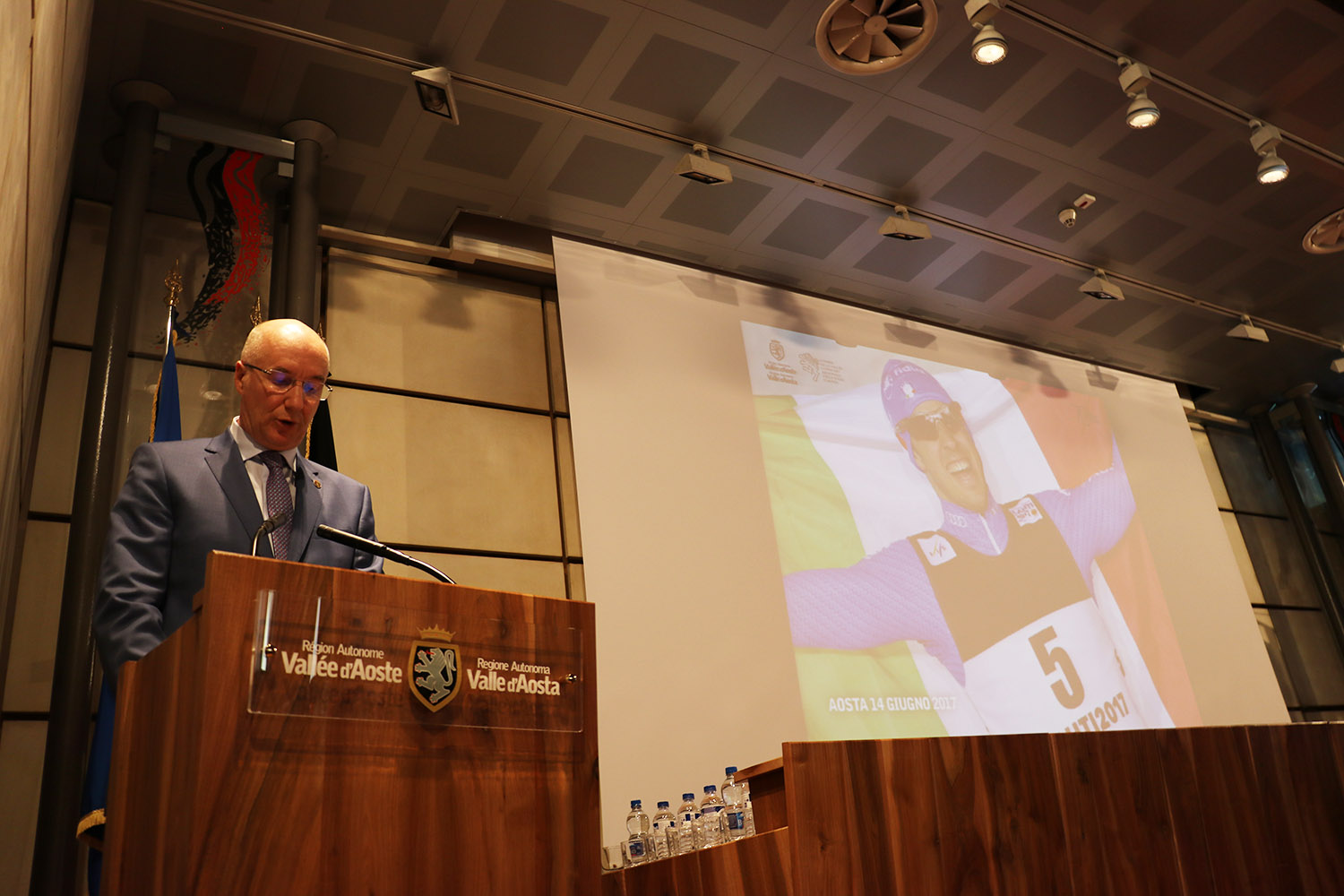 Pellegrino, da subito, ha scherzato “Pensavo che queste cerimonie si facessero a fine carriera”, il commento una volta salito sul palco del Salone di Palazzo regionale, concentrandosi però subito sul futuro prossimo della sua attività: “È un onore ricevere questa onorificenza – ha spiegato il campione di sci nordico –, la Valle è sempre nel mio cuore e cerco di promuoverla in tutto il mondo. Il mio obiettivo, una sfida difficile, è quella di portare qui un oro olimpico, e mi sto allenando ogni giorno per riuscirci”.