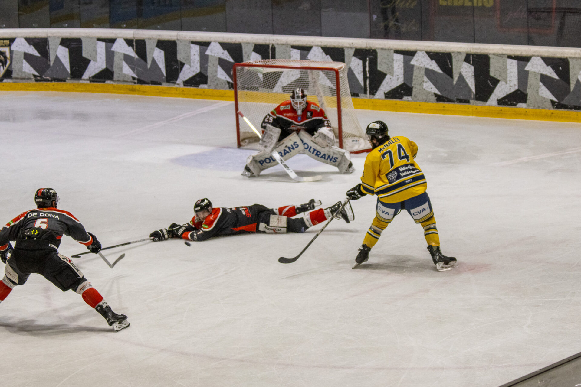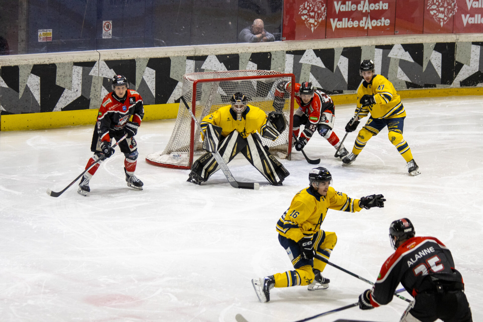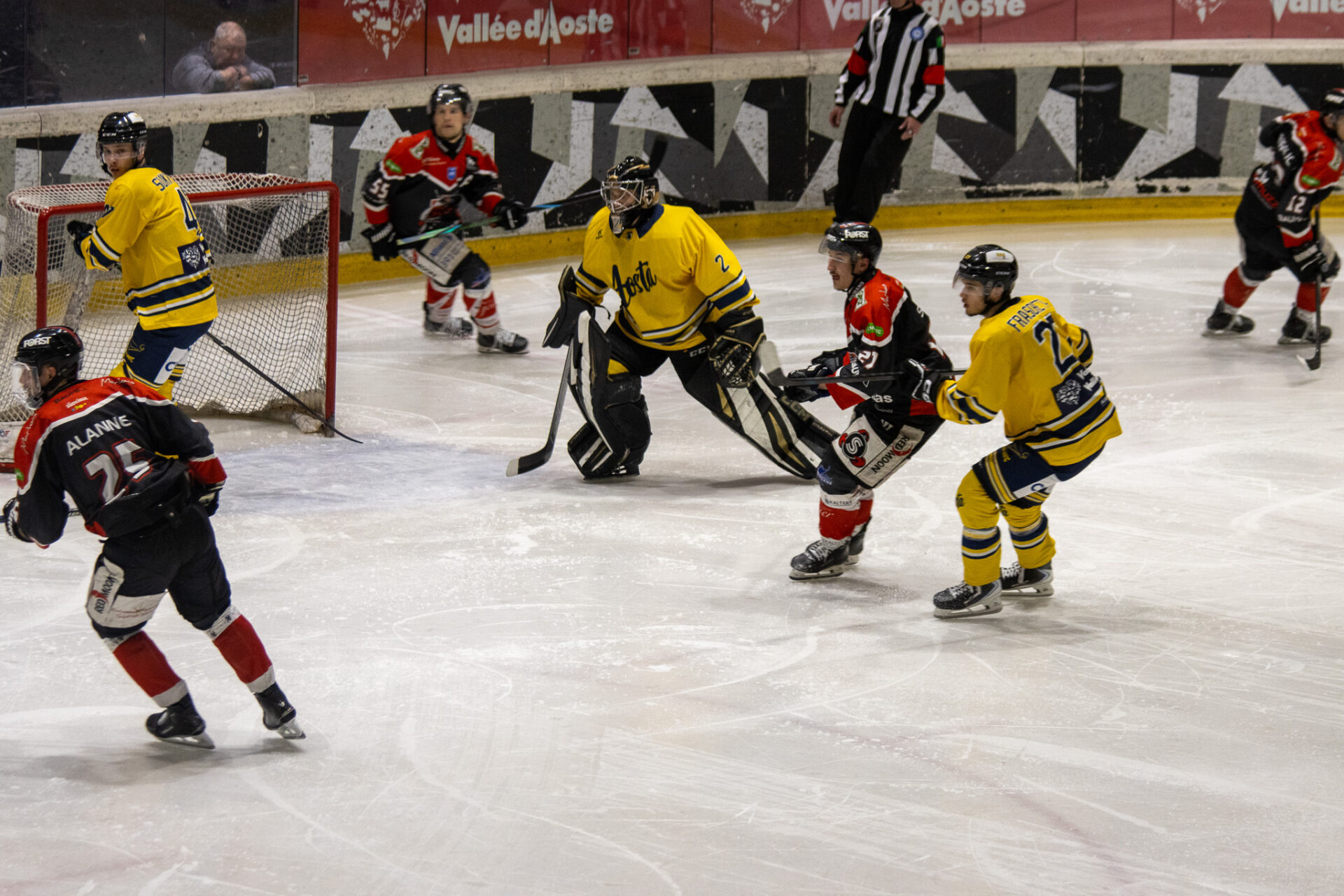 Dopo quattro gare tutte decise dalla squadra di casa (gara-1, gara-2, gara-3), l’HC Aosta riporta la serie in equilibrio sul 2-2. La finale si sposta ora nuovamente a Caldaro: gara-5 è in programma il 7 aprile alla Raiffeisen Arena.